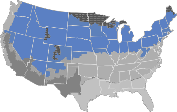 A cold climate is defined as a region with between 5,400 and 9,000 heating degree days.