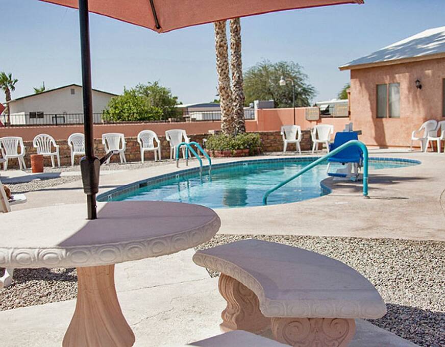 Foothill Village RV Resort is located in East Yuma known as The Foothills area. We are a small, friendly, clean resort of 160 sites with a BIG resort atmosphere. The location of this Yuma RV resort is an easy walk to restaurants, beauty and barber shops, a small fully stocked grocery store and dancing at Mickey B's. The library, post office, 3 golf courses and Walmart are within a 5 mile radius. Foothill Village RV Resort offers pool tables, library,TV lounge, puzzle room and cornhole.