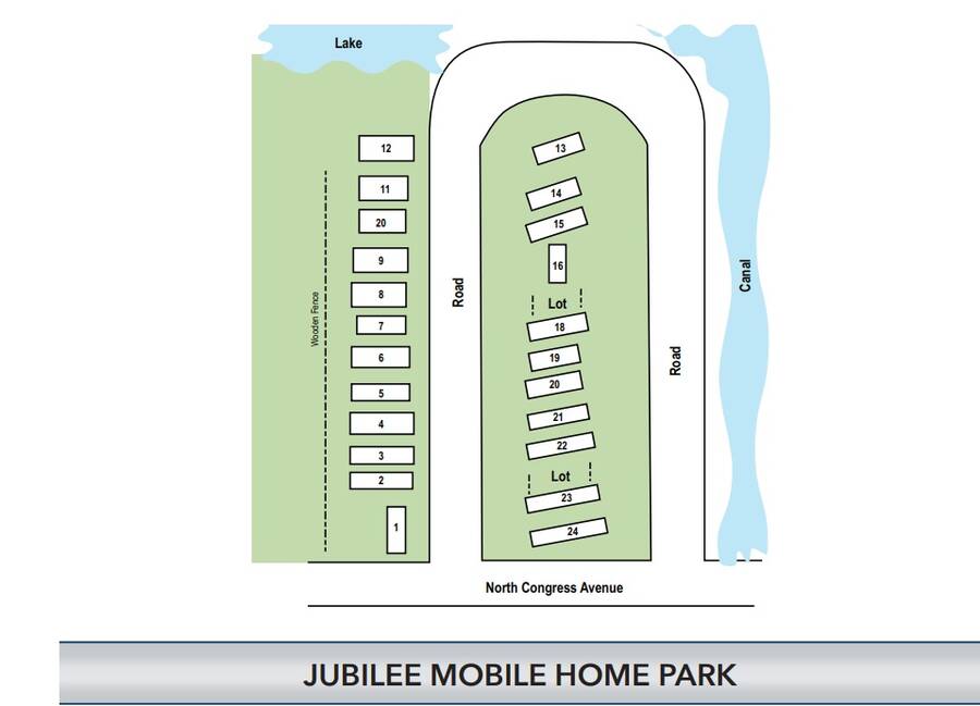 Jubillee Mobile Home Park is a land-lease community and has a total of 24 home sites.