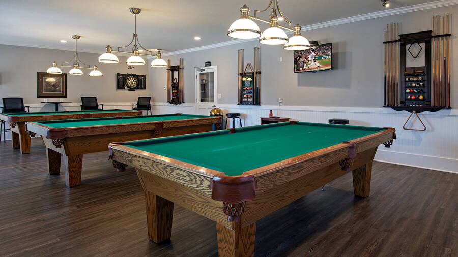 • Stop by our spacious clubhouse to meet your new neighbors and future friends over a game of darts, billiards, or cards
