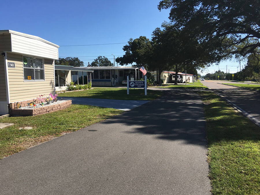 Happy Trails Mobile Home Park is an age-restricted (55+) manufactured home community located in 2261 Gulf To Bay Boulevard, Clearwater, FL 33765.