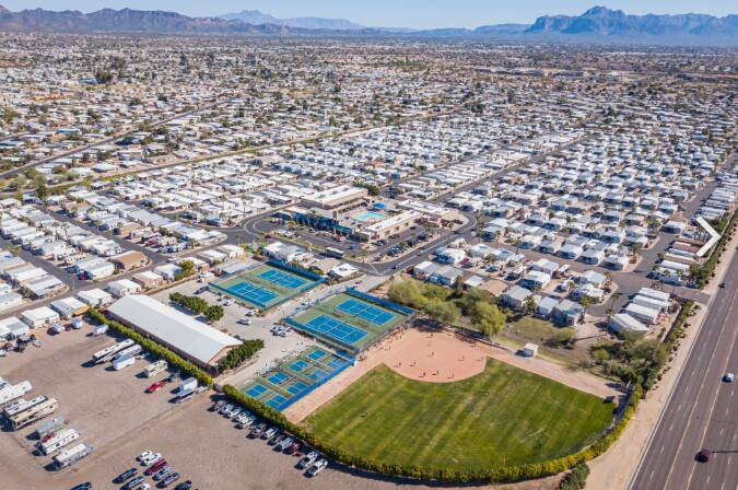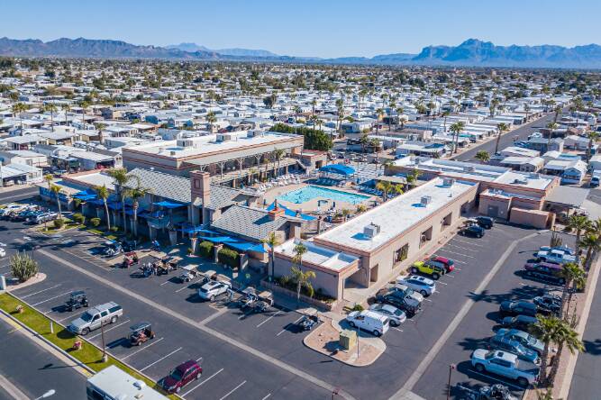 The Resort is an age-restricted (55+) manufactured home community located in 99V9+MG, 1101 S Ellsworth Rd, Mesa, AZ 85208.