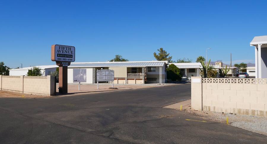 Fifth Avenue Estates is an age-restricted (55+) manufactured home community located in 2420 W 5th Ave, Apache Junction, AZ 85120.