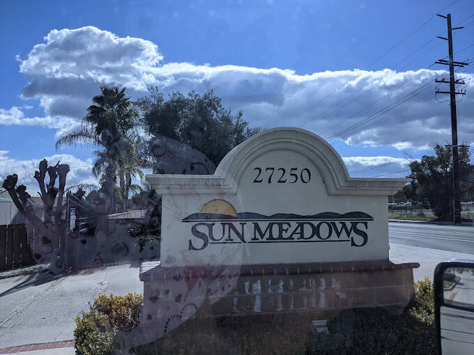 Sun Meadows is an age-restricted (55+) manufactured home community located in 27250 Murrieta Road, Sun City, CA 92586.