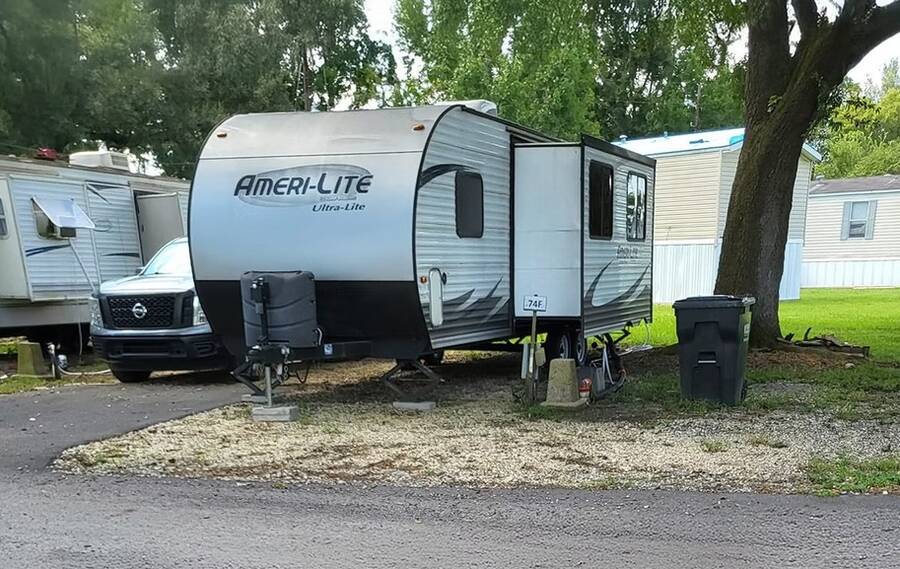 The streets in the community are gravel, and are of an average street width. The water in the community is sourced from the city and the sewer system is city provided. Parking is off-street The community has 0 parking spaces available for RVs.