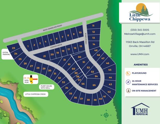 Managed on-site by UMH Properties,Inc. Little Chippewa is an affordable housing choice for active, family-friendly living. This well-maintained community has easy access to local schools, recreation, shopping and entertainment.