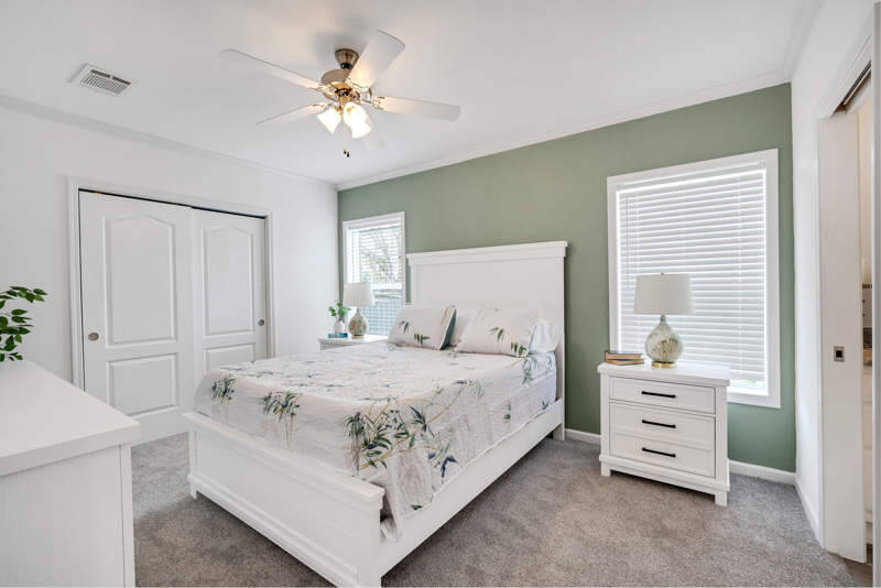The primary suite is spacious enough to accommodate large furniture, and the primary bath features a walk-in shower for added convenience. The guest room is a versatile space, perfect as a guest room or a home office to fit your needs.