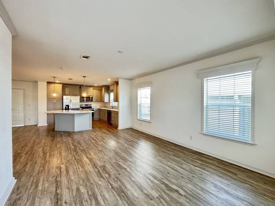 Inside, you’ll love the open-concept floor plan, high ceilings, abundant natural light, and luxury vinyl plank flooring throughout. The gourmet kitchen is a chef’s dream, boasting quartz countertops, stainless steel appliances, a large center island, and custom cabinetry — perfect for both everyday meals and entertaining.
