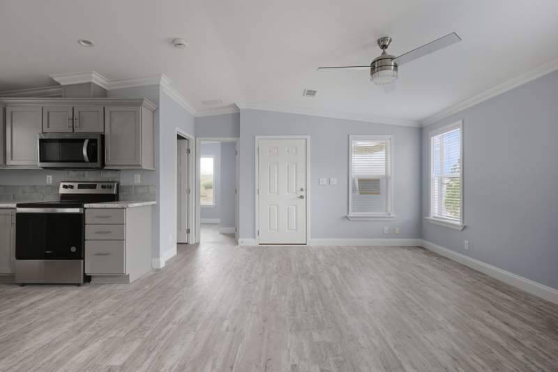 New 2024 Palm Harbor ranch style home, featuring an open concept living space, 2 bedrooms, 2 baths, living room, dining room and a well-designed modern kitchen to suit your needs. You do not want to miss out on the opportunity to own this beautiful home. On a great corner lot with very spacious driveway close to all amenities.