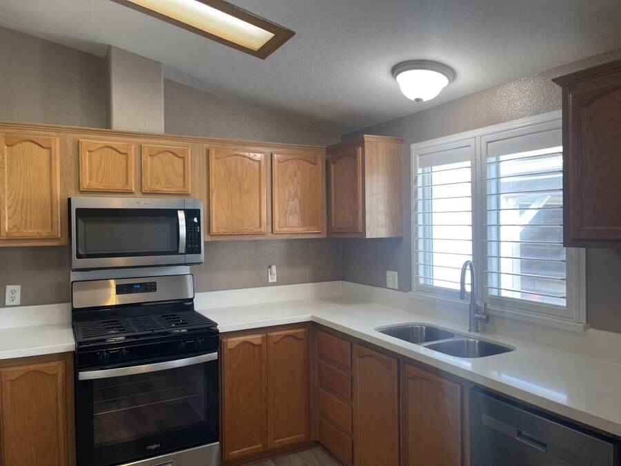 Drastically reduced, you must experience this spectacular 3 bedroom, 2 bath home complete with two car garage which has direct access into the home. This home is move-in ready , and property truly defines the term turnkey. Built in 2004, features include: all kitchen new stainless appliances, ceiling fans throughout, central air and heating, ceiling sky lights and gas fireplace in living room, efficient full-size washer and dryer. All cabinets were refreshed throughout the house. Roof and water heater new within past three years. There are so many upgrades to this home. The owner has receipts for all work completed. Upgrades just completed include designer ceiling fan in the dining area, completely repainted exterior and interior, custom plantation shutters throughout, 5 custom base boards, new six panel doors, colonial door casings on all doors, new quartz countertops and back splashes throughout the house, new kitchen double sink, new garbage disposal and plumbing, and new kitchen appliances. Both baths renovated with new toilets, quartz countertops and back splashes, faucets, dual designer mirrors in primary bath and new Rain shower doors just to name a few. Oak Creek amenities include a large Pool, Jacuzzi, Petanque, walking trails, exercise room and a clubhouse. Easy access to major roads and shopping. This home shows pride of ownership and is a wonderful opportunity to make your dream of home ownership a reality.
