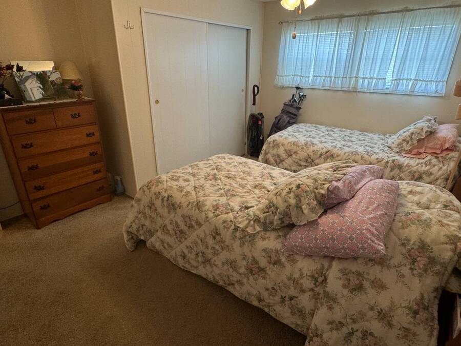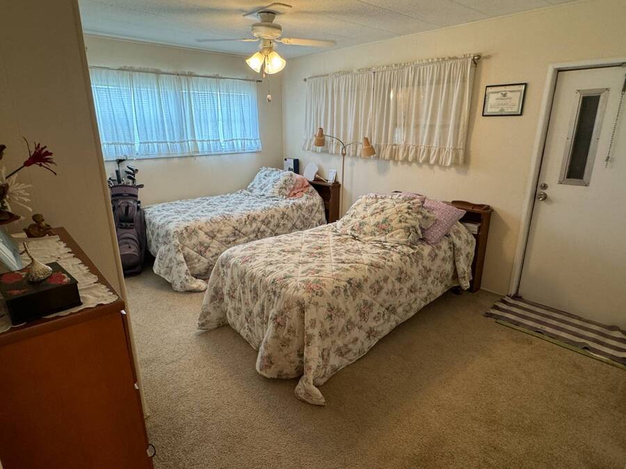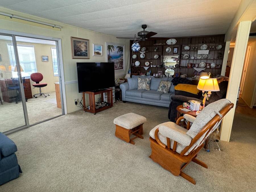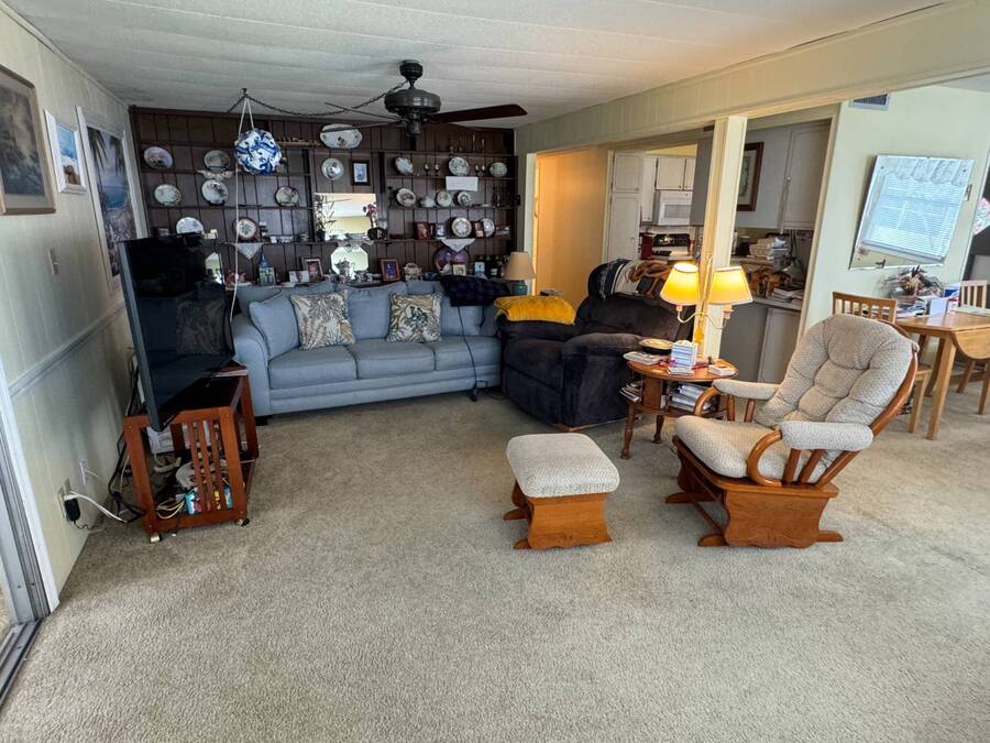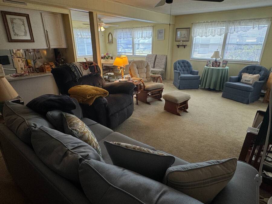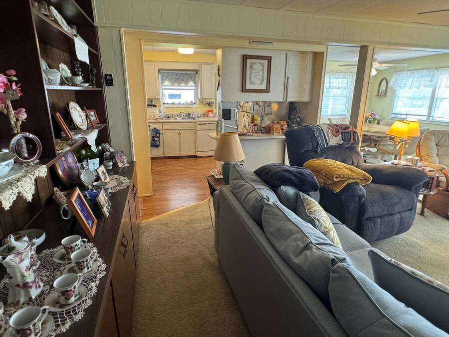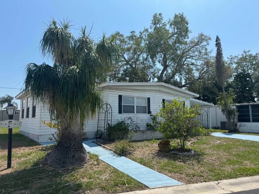 NEW Roof & Carport December 2024 making this home better than previously advertised and no new price increase! Take advantage of this great value. This is a 1970 doublewide home with two bedrooms two bathrooms with 1,080 sq ft under air plus an additional 190 sq ft in the enclosed lanai. Step into the kitchen area where you have a pass-through to the dining room or into the living room area. The kitchen includes refrigerator, range, microwave, dishwasher, and disposal. There's plenty of storage here. This home is being offered turnkey furnished. The dining room and living room are open to the sliding doors of the lanai, enclosed with glass windows. The home is being sold in as-is condition and priced accordingly. Some noticeable ceiling water stains from a roof leak during high wind. The guest bathroom has updates with newer vanity and step-in shower enclosure. This bathroom also has its own private entry door to the guest bedroom. The guest bedroom it's currently set up with two double beds with plenty of open space. A large double door closet and, as mentioned, a private door to the guest bath. In addition, there is an exit door to the laundry and storage area. The primary bedroom feature en suite bathroom with step-in shower. This room also has a double door closet along with a walk-in closet. The carport ample room for two vehicles, The storage shed, at the end of the carport, has double doors for golf cart entry. The golf cart remains with the home. Laundry is located in the storage shed with entry to the guest bedroom, to the carport or back yard. This home sits on a large lot on the perimeter of the park with mature oak trees. This home needs a little bit of TLC but is listed at a value price with all items considered. Ask to see our full YouTube Video home tour! This home is centrally located in Bradenton, just a few miles north of Sarasota Bradenton International Airport and about 15 minutes from the beautiful Gulf Coast beaches. Village on the Greens is a gated, 55+, pet-free community that offers a welcoming and active lifestyle. Residents enjoy a variety of amenities, including a swimming pool, shuffleboard courts, a library, a fitness center, a clubhouse, and a full calendar of social activities. Exciting amenity upgrades are coming soon, including decorative fencing and landscaping, two new pickleball courts, two bocce ball courts, a brand-new zero-entry pool, a putting green, an updated shuffleboard area, an electric fire pit with seating, an outdoor grill area, new benches and bike racks, and a scenic walking path. The total fixed monthly cost is $1,247.59, which includes lot rent of $1,115, a community insurance assessment of $11.56, water, sewer & trash service at $35.29, common area electric at $5.74, and Spectrum bulk cable and internet at $80. Lawn care is available for $36 per month. Community approval and a background check are required, and subleasing is not permitted. Florida Life Mobile Home Sales, Inc. does not provide guarantees on the accuracy of this information or the condition of any properties. It is recommended that buyers conduct their own independent research and inspections. AGENT MUST SHOW BY APPOINTMENT 508 44th Ave E Lot T-5 (Park street name - 12th Ave) Bradenton, FL 34203