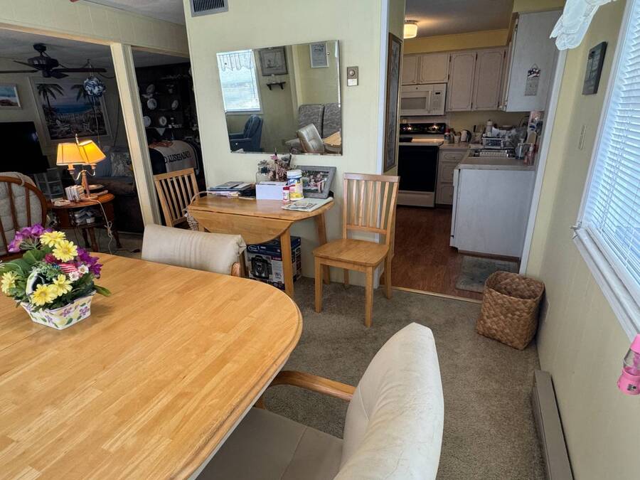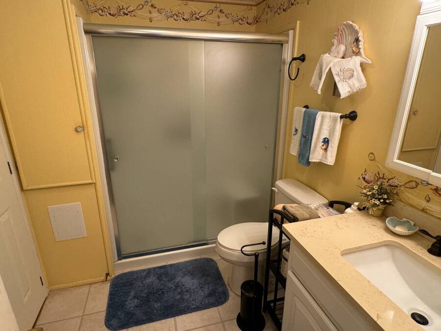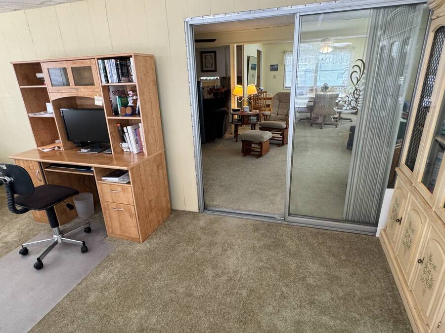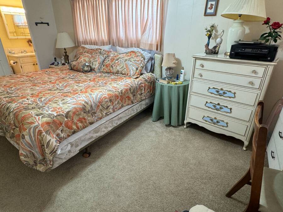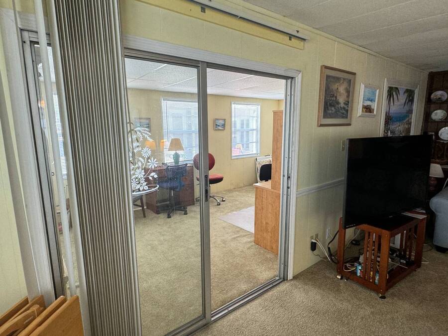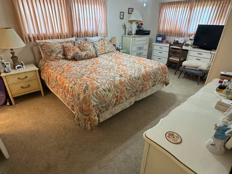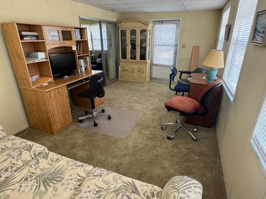 NEW Roof & Carport December 2024 making this home better than previously advertised and no new price increase! Take advantage of this great value. This is a 1970 doublewide home with two bedrooms two bathrooms with 1,080 sq ft under air plus an additional 190 sq ft in the enclosed lanai. Step into the kitchen area where you have a pass-through to the dining room or into the living room area. The kitchen includes refrigerator, range, microwave, dishwasher, and disposal. There's plenty of storage here. This home is being offered turnkey furnished. The dining room and living room are open to the sliding doors of the lanai, enclosed with glass windows. The home is being sold in as-is condition and priced accordingly. Some noticeable ceiling water stains from a roof leak during high wind. The guest bathroom has updates with newer vanity and step-in shower enclosure. This bathroom also has its own private entry door to the guest bedroom. The guest bedroom it's currently set up with two double beds with plenty of open space. A large double door closet and, as mentioned, a private door to the guest bath. In addition, there is an exit door to the laundry and storage area. The primary bedroom feature en suite bathroom with step-in shower. This room also has a double door closet along with a walk-in closet. The carport ample room for two vehicles, The storage shed, at the end of the carport, has double doors for golf cart entry. The golf cart remains with the home. Laundry is located in the storage shed with entry to the guest bedroom, to the carport or back yard. This home sits on a large lot on the perimeter of the park with mature oak trees. This home needs a little bit of TLC but is listed at a value price with all items considered. Ask to see our full YouTube Video home tour! This home is centrally located in Bradenton, just a few miles north of Sarasota Bradenton International Airport and about 15 minutes from the beautiful Gulf Coast beaches. Village on the Greens is a gated, 55+, pet-free community that offers a welcoming and active lifestyle. Residents enjoy a variety of amenities, including a swimming pool, shuffleboard courts, a library, a fitness center, a clubhouse, and a full calendar of social activities. Exciting amenity upgrades are coming soon, including decorative fencing and landscaping, two new pickleball courts, two bocce ball courts, a brand-new zero-entry pool, a putting green, an updated shuffleboard area, an electric fire pit with seating, an outdoor grill area, new benches and bike racks, and a scenic walking path. The total fixed monthly cost is $1,247.59, which includes lot rent of $1,115, a community insurance assessment of $11.56, water, sewer & trash service at $35.29, common area electric at $5.74, and Spectrum bulk cable and internet at $80. Lawn care is available for $36 per month. Community approval and a background check are required, and subleasing is not permitted. Florida Life Mobile Home Sales, Inc. does not provide guarantees on the accuracy of this information or the condition of any properties. It is recommended that buyers conduct their own independent research and inspections. AGENT MUST SHOW BY APPOINTMENT 508 44th Ave E Lot T-5 (Park street name - 12th Ave) Bradenton, FL 34203