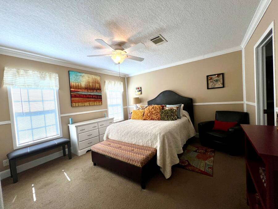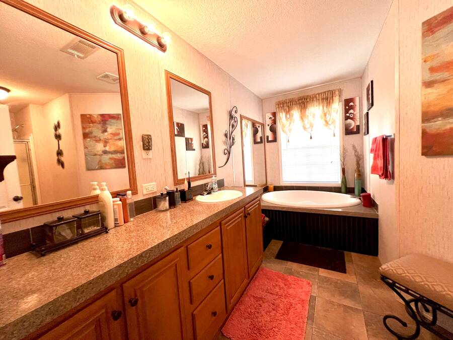 NEW roof and carport 2025! You will appreciate the peaceful wooded lot and Slaughter Creek tidal inlet view from the screened lanai.~WALK THRU video available! MOVE IN IMMEDIATELY upon Park approval! ~~FEATURES/UPDATES: Conforms to HUD Manufactured Homes Construction Safety Standards and Wind Zone 3 (homes must withstand wind speeds as high as 110 mph). The home is currently insured; A Four Point Insurance Inspection is available for buyer inspection that covers the next four items: ~ROOF: 2025 Shingle ~HVAC: 2025 central AC/heat ~PLUMBING: 2013 PEX ~ELECTRIC: 2013 Eaton 150 amp panel, copper OTHER: ~APPLIANCES: Newer Washer/Dryer inside unit ~FLOORS: Tile and carpet ~WALLS/CEILINGS: Drywall ~FURNISHED: Offered fully furnished with turnkey supplies. This was a model home that was professionally decorated. ~LOCATION: On a quiet cul-de-sac near a community entrance ~LANAI: Tranquil side-set screen room overlooking the back yard that is wide open with a park-like setting. There is a tidal inlet creek visible plus wildlife to view. ~CARPORT/PARKING: 2 vehicles; new 2025 ~SHED: 6 X 8 detached that has lights and power ~EXTERIOR: Vinyl siding ~PEST CONTROL: Bi-monthly professional service ~KITCHEN/DINING: Nice appliances, quality cabinets and pantry. There is an open concept eat-in dining area. Built in water filtration too! ~LIVING ROOM: Natural light from windows and an entry door. The TV and all the furniture is included! ~BEDROOMS/BATHROOMS: -Owners bedroom suite includes the furniture and TV. There is a large reach-in closet and an en-suite bathroom with a soaking tub and a step-in shower. 2 extra bedrooms; perfect for your guests or space for an office or hobby room! Both bedrooms have reach-in closets. Just across the hall is the large guest bathroom that is easily accessible from the living area. It has a large vanity and a shower/tub combo. ~~MONTHLY LOT RENT: $1152.76 (market rate TBD by community; subject to change) covers all of the community amenities plus almost all other typical monthly expenses such as water, sewer, trash pickup, recycling, all property taxes plus lawn care. The active adult lifestyle is designed to help you enjoy the finer things in life! ~9 community buildings includes 4 meeting halls ~6 community pools ~2 fitness centers ~Over 20 ponds/lakes/inlets ~Marina on the Manatee River: 75 slips/boat trailer storage (nominal fee) ~Fishing pier, outdoor pavilion, fireplace ~Dog Park split big/little pups. 2 pets permitted up to 75 lbs with breed restrictions ~2 Nature Preserves: Micro-forest 1.5 acres with walking trails plus mangrove canals off river for kayaking ~Billiards Room ~ Arts/Crafts, game/card rooms ~Woodworkers Shop ~Libraries ~Pickle-ball, tennis, shuffle, horseshoe courts ~45+ miles of roadways for walking/riding ~24/7 roving courtesy patrol ~Partially gated ~Planned activities every day including holidays ~30+ clubs to join ~Golf cart accessible shopping plaza at Creekside Commons (Lowes, Aldi, Home Goods, Restaurants, Pet supplies plus more!) ~~Your dream destination and new lifestyle await! Live where everyone else goes on vacation! Florida MH Sales, LLC cannot guarantee/warrant the accuracy of information/measurements/condition of any property. Measurements are approximate. All homes are sold AS IS; personal or professional inspection is encouraged. Buyers assume full responsibility for obtaining all current rate of lot rent fees/pass-on costs, rules/regulations, pet policies, etc., associated with the park from the community administrative office. LOCATION: Midway between Tampa and Sarasota; just minutes from the I-75 interstate in Manatee County. Easy access to airports in Tampa, St. Pete and Sarasota. NEARBY: ~BEACHES: Over 7 miles of free, sugar sand beaches at Anna Maria Island plus Longboat, Lido and Siesta Key are less than 1 hour away!
