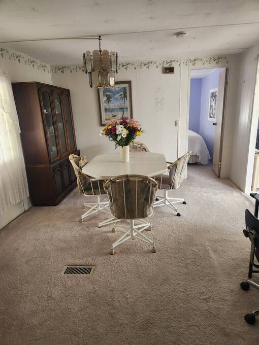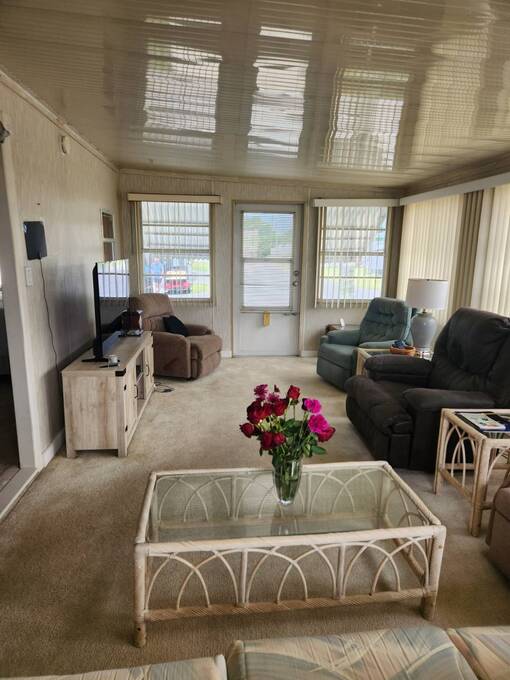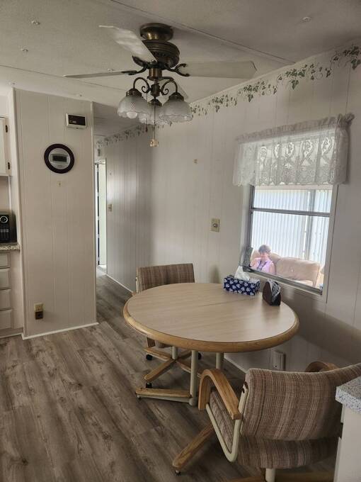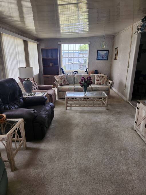 This well-kept home features 1200SF of living space, two bedrooms, 1 1/2 baths, new central AC and updated wiring throughout. The mobile home with two additions includes more than 1200 square feet of living space and is fully furnished except for Florida room. A new lifetime rubber roof was added about 4 years ago. An open layout and split floor plan offer privacy for owners and guests. A small workroom provides extra storage shelves and basic tools. The monthly lot rent of $545 covers sewer, water and trash removal services. This lovely mobile home community features a rec room, Olympic size pool, jacuzzi, library, fitness center, pickle ball, shuffleboard, kayaking, fishing and a nature park. Boat and RV storage are available for an extra fee. The park has a boat ramp and other boat ramps are located nearby. Tampa International Airport, Sarasota International Airport, Disney and Gulf beaches are just a short ride. Dining and shopping are conveniently located. Over $25,000 in property improvements have been completed over the past year. Move in ready; just pack a bag and a toothbrush!