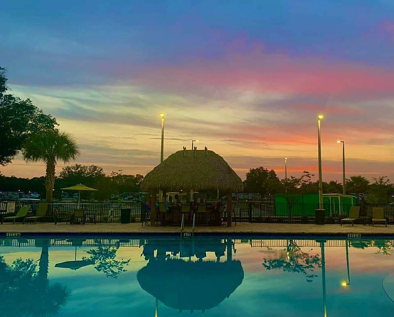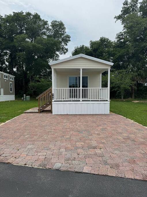 Experience the ultimate in luxury retirement living with this 2024 ScotBilt home, offering 455 square feet of meticulously designed space. Nestled in the pristine community of Sunkissed Village RV Resort, an active 55 plus retirement community, this home provides an exceptional lifestyle tailored for those seeking both comfort and quality. The interior features top-of-the-line black appliances, perfect for modern culinary adventures, and a stackable Whirlpool washer and dryer for added convenience. Designed with sustainability in mind, the home features whole-house ventilation and an E-rated energy efficiency, ensuring a comfortable living environment while reducing energy costs. The thoughtful layout includes exceptional storage space, maximizing the use of every square foot without compromising on style or functionality. Constructed with superior craftsmanship, this ScotBilt home is built to last, offering peace of mind and lasting value. Sunkissed Village RV Resort offers a wealth of amenities that cater to an active and social retirement lifestyle. Enjoy the spacious, modern clubhouse housing the resort office, a fully equipped kitchen, fitness center, game room, event space, restrooms, and showers. The large, heated pool with a paver deck provides the perfect spot to relax, complete with contemporary outdoor seating, a Tiki bar, and a grill area. The resort features pickleball courts, a bocce ball court, and shuffleboard courts. In the evenings, gather around the outdoor gas fire pit with seating for a cozy social experience. Pet owners will appreciate the dog park with a hot water bath, ensuring your furry friends are well taken care of. The resort also offers seasonal planned activities and entertainment, all managed by an on-site Activities Director, ensuring there is always something fun and engaging to do. Do not miss out on this great opportunity to live in the serene and beautifully maintained Sunkissed Village RV Resort. Embrace a quality, sustainable lifestyle in a home designed for those who appreciate the finer things in life.
