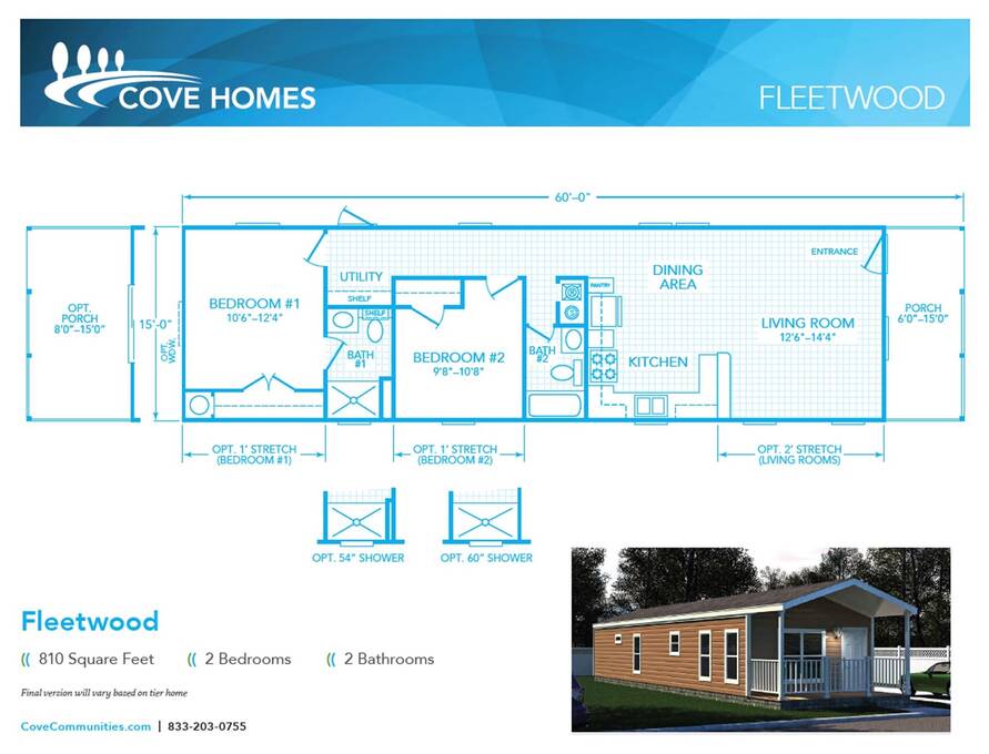 2 beds | 2 baths | 810 sqft | Lot: 0168