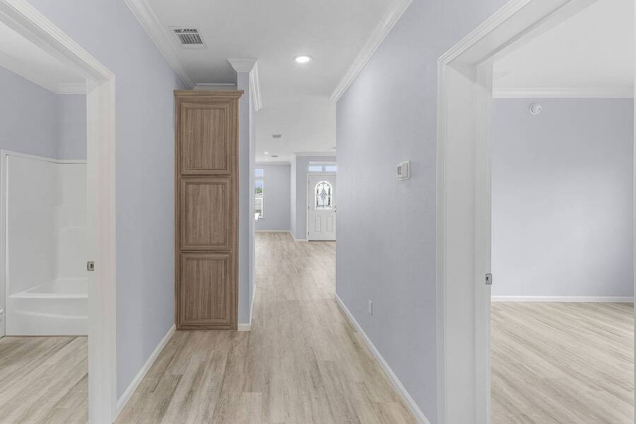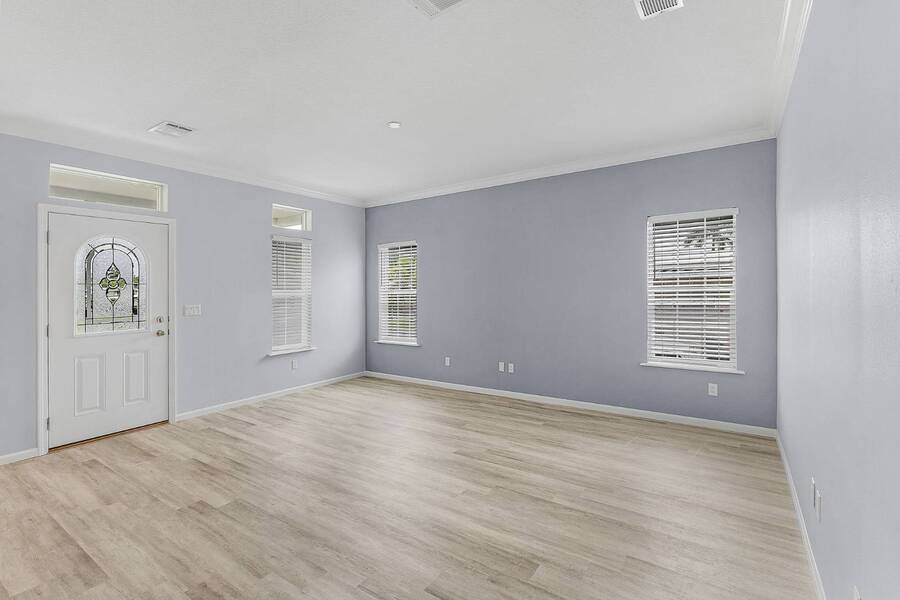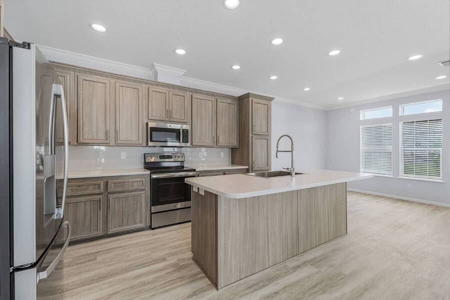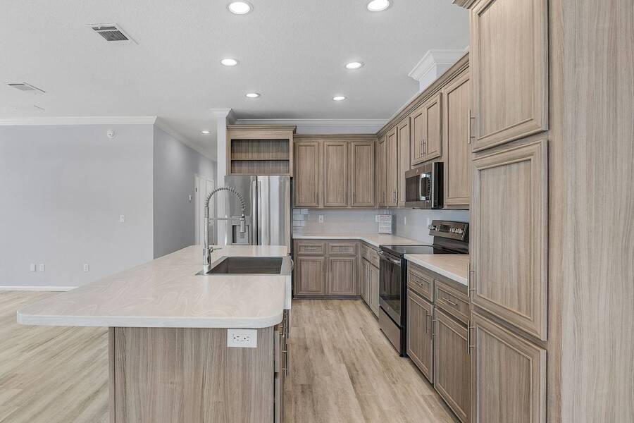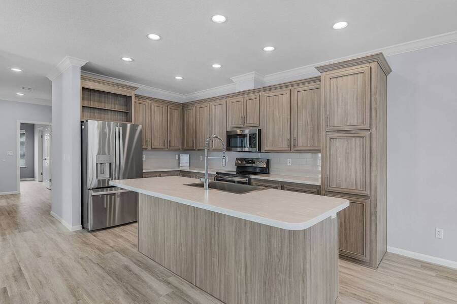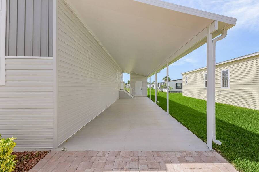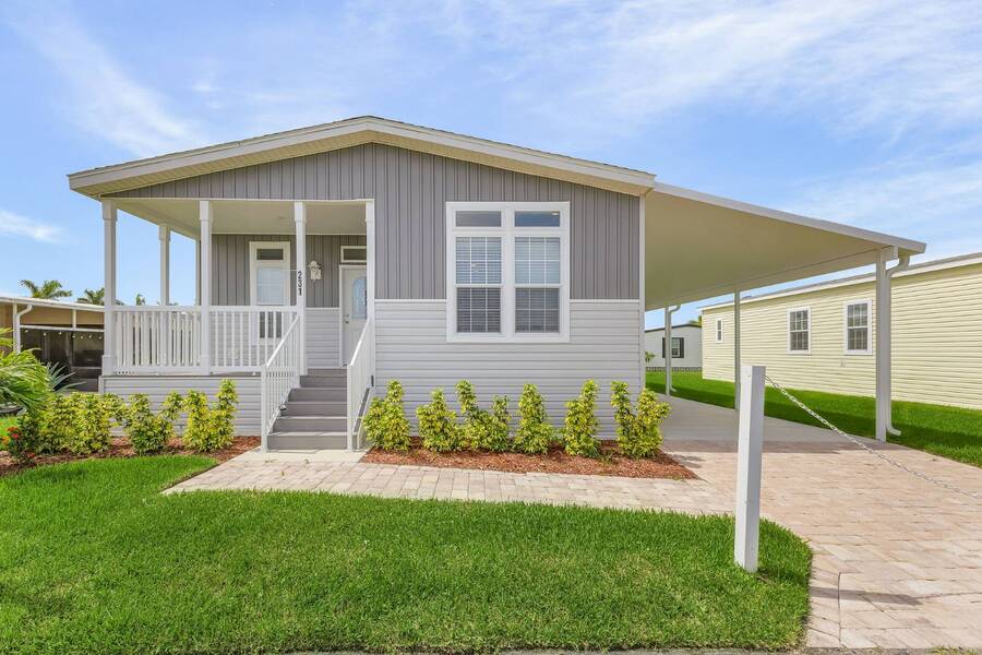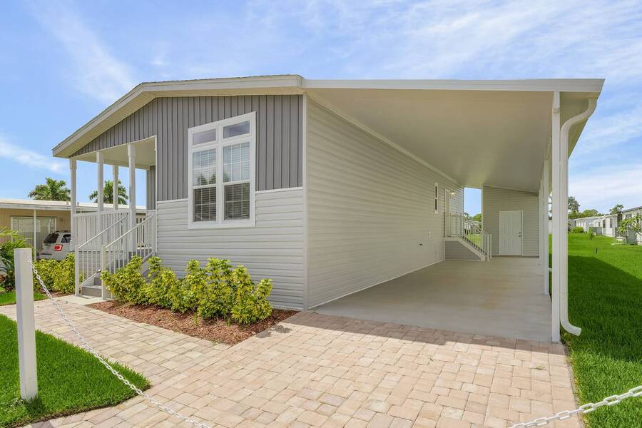 Our newest 2024 Jacobsen Homes are ready, with wide open great room design with 9ft ceilings, crown and base trim, 2 Bed/2 full baths, luxury vinyl oak flooring throughout, cabinetry w/ satin nickel fixtures, oversized center island breakfast bar, plus a full GE S/S appliance package in kitchen, LED lighting through out, window blinds, and so much more! Bonus laundry room/pantry, with washer /dryer hook-ups at the side entrance. We will provide you with a gift card to fill in your preference for the washer/dryer. All Jacobsen homes are built to the highest wind zone standards and include storage shed, composite decking and porch, sodded lot with irrigation, paver sidewalks, and nice landscaping package. The Home is conveniently located just a short walk to the clubhouse ad the 30,000Sq.Ft. Amenity Center and short drive to Downtown Attractions, Shopping and the Beach. Call today, to take advantage summer purchase incentives including, 3.99% Financing, Low Down Payment and One Year of Paid Lot Fees.