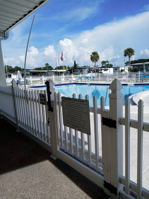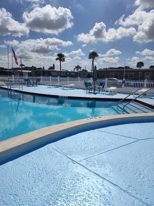 This 2 or 3 bedroom 2 bath home ( can be office or bdrm) is in a very nice 55 plus community that is centrally located just minutes away from highways, shopping, bus stops,and "beaches" or whatever you need. It has a front side foyer entry into the open space living and dining area and also a side entry into the little gated porch area for your fur baby that leads into the kitchen area that is open with a nice island with a nice exhaust fan. Lots of cabinet space in the kitchen and a nice storage cabinet in dining area. The master bedroom has a nice walk in closet and a spectacular view of the private fenced backyard with the Gazebo & Hot Tub Jacuzzi that is very peaceful and serene. The home is also located at the end of the street with a gated entrance that is conviently a quick way to anywhere you need to go.This community has a heated pool, shuffleboard, cornhole, clubhouse with tons of fun events, bingo, card bingo, dances, dinners, etc. If available there is a spot to park your boat or trailer. A 40 yr. old can live here as long as a 55 or older person lives and owns the place. Lot rent is 880.00 and includes, water, sewage, trash and lawn. You must pass a credit and background check and be approved by management. All listing information is deemed reliable but not guaranteed and should be independently verified by a licensed professional. We do not guaraantee the accuracy of this information, measurements, condition of property, lot fees ( could change) All mobile homes are "sold as is". JUST REDUCED!!!! FIRM