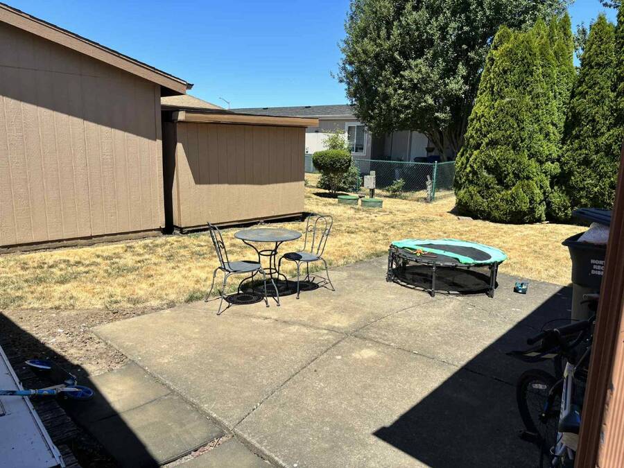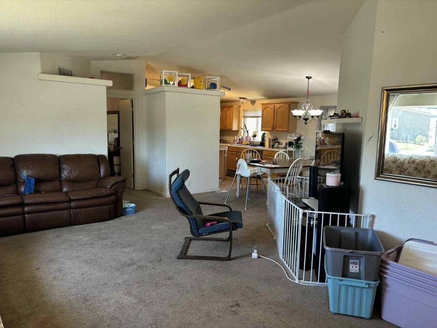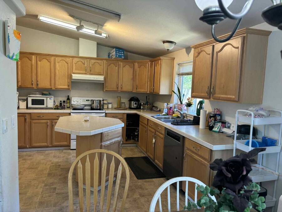 MOTIVATED SELLER! This beautifully maintained manufactured home offers 1,624 sq. ft. of comfortable living space, perfect for families looking for a cozy and functional space in a welcoming community at Country Oak Estates. Step into the open floor plan with vaulted ceilings, creating an airy and spacious feel throughout. The updated kitchen features ample cabinets, plenty of counter space, and modern appliances - ideal for family meals and gatherings. Enjoy the convenience of a large laundry room with enough room to add a second fridge for extra storage. The oversized master bedroom is a true retreat, complete with a walk-in closet and a ensuite bathroom featuring a new walk-in shower. Both bathrooms have been updated with new flooring, fresh paint, vanities, and modern fixtures, including a shower/tub combo in the hall bath. A highlight of one of the additional bedrooms is its two large closets, providing tons of storage. Outside, the well-manicured yard offers space to relax and play, with lovely shrubs and greenery. You'll also appreciate the added bonus of a garage-perfect for storing vehicles, toys, or tools. Situated in a family-oriented park in Donald, Oregon, this home is ready to welcome its new owners! Don't miss the chance to see it for yourself. Lot rent is currently $1,124.00 and utilities are billed separately. Pets are allowed but weight and breed restrictions do apply.