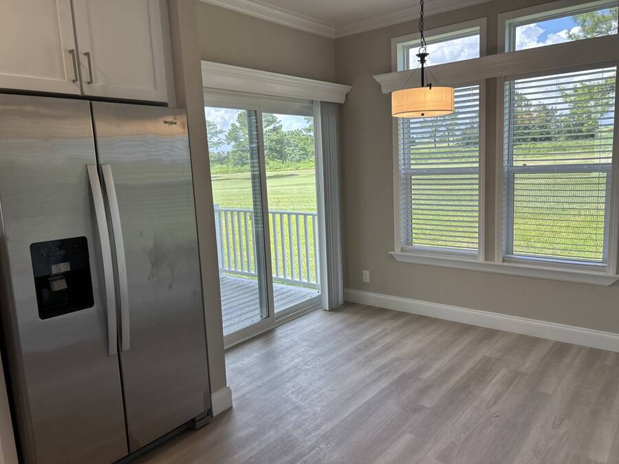 This beautiful 2024 home is built to last with Wind Zone II construction and boasts high-quality materials and craftsmanship throughout. Low-E insulated glass windows are designed to keep you comfortable year-round while being energy-efficient. The exterior includes vinyl lap siding and a 25-year algae-resistant roof for long-lasting reliability. The home also comes equipped with modern amenities like a Whirlpool stainless steel electric range, refrigerator with ice maker, and stylish ceramic tile backsplash in the kitchen. Inside, you'll find spacious rooms with seamless drywall, deluxe cove and baseboard trim, and plenty of closet space with built-in shelving. The bathrooms feature elegant ceramic tile, single-lever faucets, and walk-in shower in the primary bathroom. This home offers the perfect balance of style, function, and durability. Contact us to schedule a tour today!