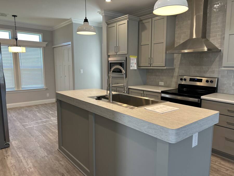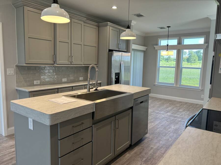 This beautiful 2024 home is built to last with Wind Zone II construction and boasts high-quality materials and craftsmanship throughout. Low-E insulated glass windows are designed to keep you comfortable year-round while being energy-efficient. The exterior includes vinyl lap siding and a 25-year algae-resistant roof for long-lasting reliability. The home also comes equipped with modern amenities like a Whirlpool stainless steel electric range, refrigerator with ice maker, and stylish ceramic tile backsplash in the kitchen. Inside, you'll find spacious rooms with seamless drywall, deluxe cove and baseboard trim, and plenty of closet space with built-in shelving. The bathrooms feature elegant ceramic tile, single-lever faucets, and walk-in shower in the primary bathroom. This home offers the perfect balance of style, function, and durability. Contact us to schedule a tour today!