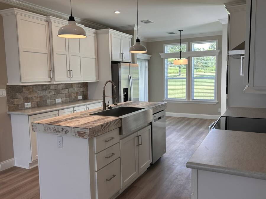 This beautiful 2024 home is built to last with Wind Zone II construction and boasts high-quality materials and craftsmanship throughout. Low-E insulated glass windows are designed to keep you comfortable year-round while being energy-efficient. The exterior includes vinyl lap siding and a 25-year algae-resistant roof for long-lasting reliability. The home also comes equipped with modern amenities like a Whirlpool stainless steel electric range, refrigerator with ice maker, and stylish ceramic tile backsplash in the kitchen. Inside, you'll find spacious rooms with seamless drywall, deluxe cove and baseboard trim, and plenty of close space with built-in shelving. The bathrooms feature elegant ceramic tile, single-lever faucets, and walk-in shower in the primary bathroom. This home offers the perfect balance of style, function, and durability. Contact us to schedule a tour today!