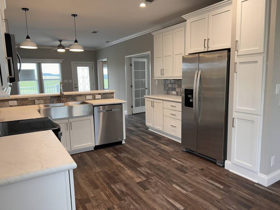 This beautiful 2024 home is built to last with Wind Zone II construction and boasts high-quality materials and craftsmanship throughout. Low-E insulated glass windows are designed to keep you comfortable year-round while being energy-efficient. The exterior includes vinyl lap siding and a 25-year algae-resistant roof for long-lasting reliability. The home also comes equipped with modern amenities like a Whirlpool stainless steel electric range, refrigerator with ice maker, and stylish ceramic tile backsplash in the kitchen. Inside, you'll find spacious rooms with seamless drywall, deluxe cove and baseboard trim, and plenty of closet space with built-in shelving. The bathrooms feature elegant ceramic tile, single-lever faucets, and walk-in shower in the primary bathroom. This home offers the perfect balance of style, function, and durability. Contact us to schedule a tour today!