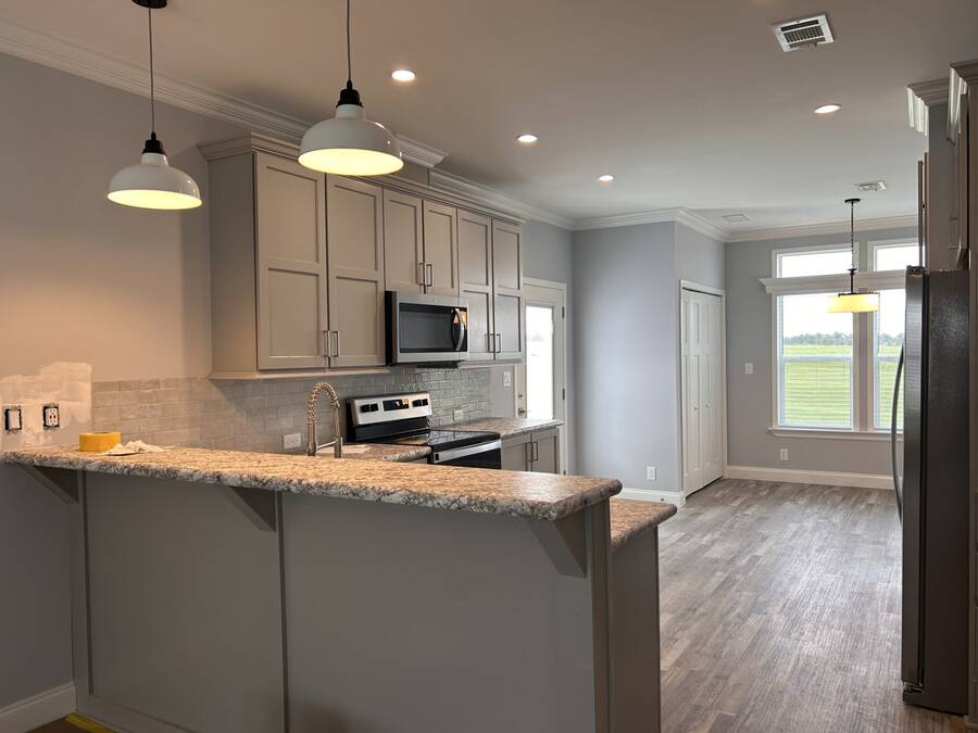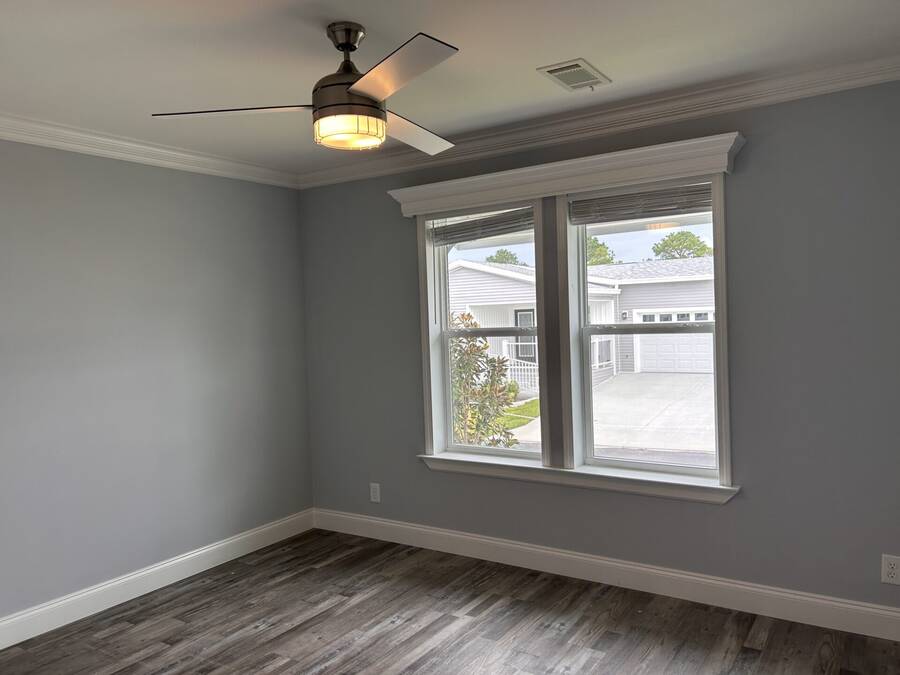 This beautiful 2024 home is built to last with Wind Zone II construction and boasts high-quality materials and craftsmanship throughout. Low-E insulated glass windows are designed to keep you comfortable year-round while being energy-efficient. The exterior includes vinyl lap siding and a 25-year algae-resistant roof for long-lasting reliability. The home also comes equipped with modern amenities like a Whirlpool stainless steel electric range, refrigerator with ice maker, and stylish ceramic tile backsplash in the kitchen. Inside, you'll find spacious rooms with seamless drywall, deluxe cove and baseboard trim, and plenty of closet space with built-in shelving. The bathrooms feature elegant ceramic tile, single-lever faucets, and walk-in shower in the primary bathroom. This home offers the perfect balance of style, function, and durability. Contact us to schedule a tour today!