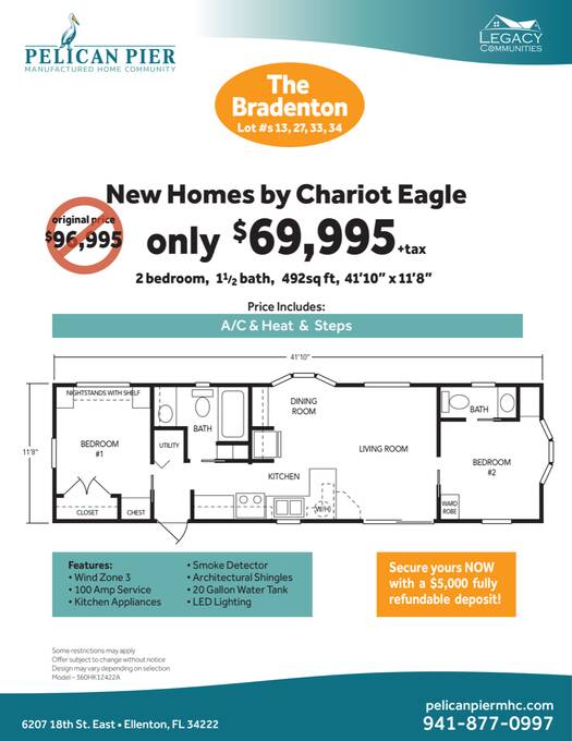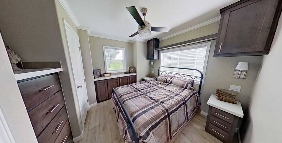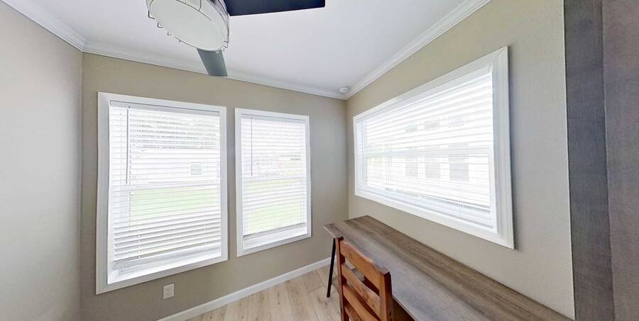 Step into the brand-new Catalina model, a thoughtfully designed 2-bedroom, 1.5-bath home that blends comfort with modern style. This home features elegant crown molding, energy-efficient LED lighting, and ceiling fans to keep the space bright and comfortable year-round. Blinds are installed throughout for added privacy and convenience. Additional highlights include durable architectural shingles, a 20-gallon water heater, and a built-in smoke detector for added peace of mind. With its smart layout and quality finishes, the Catalina model is a perfect place to call home.