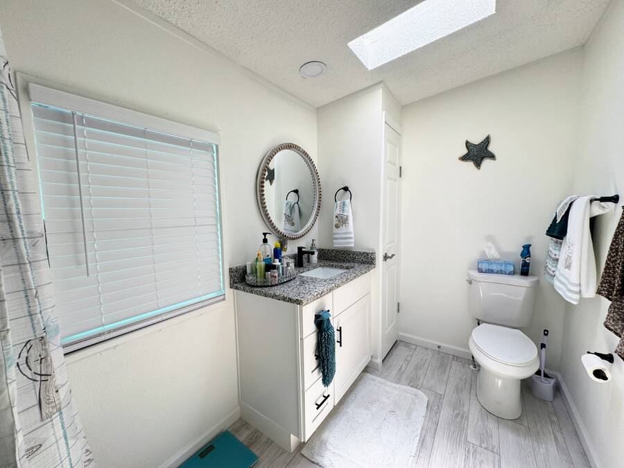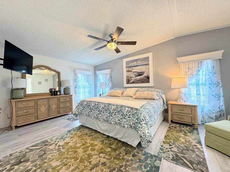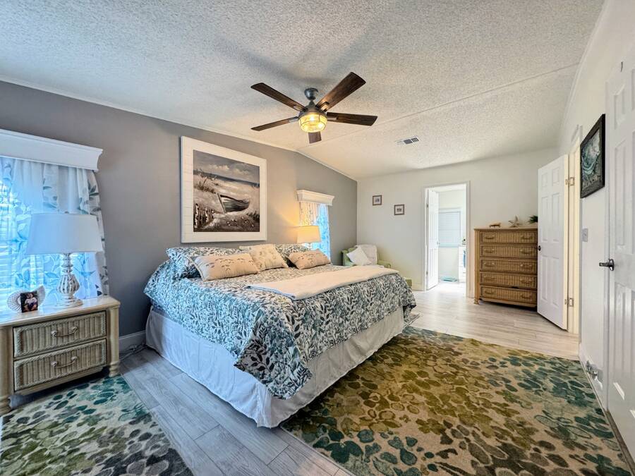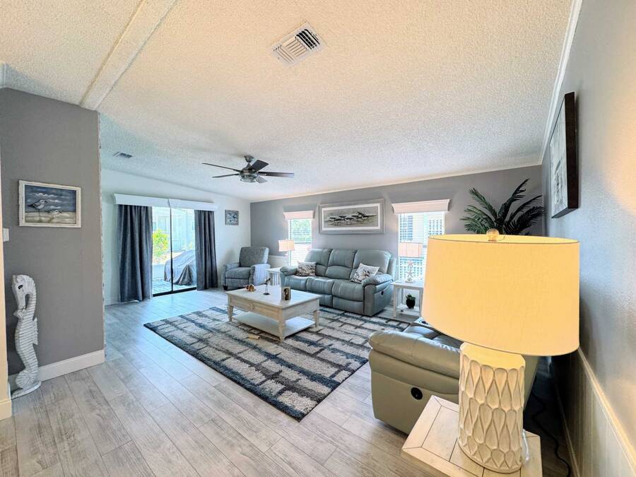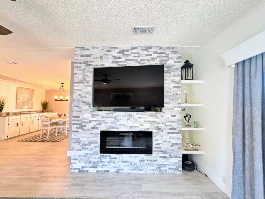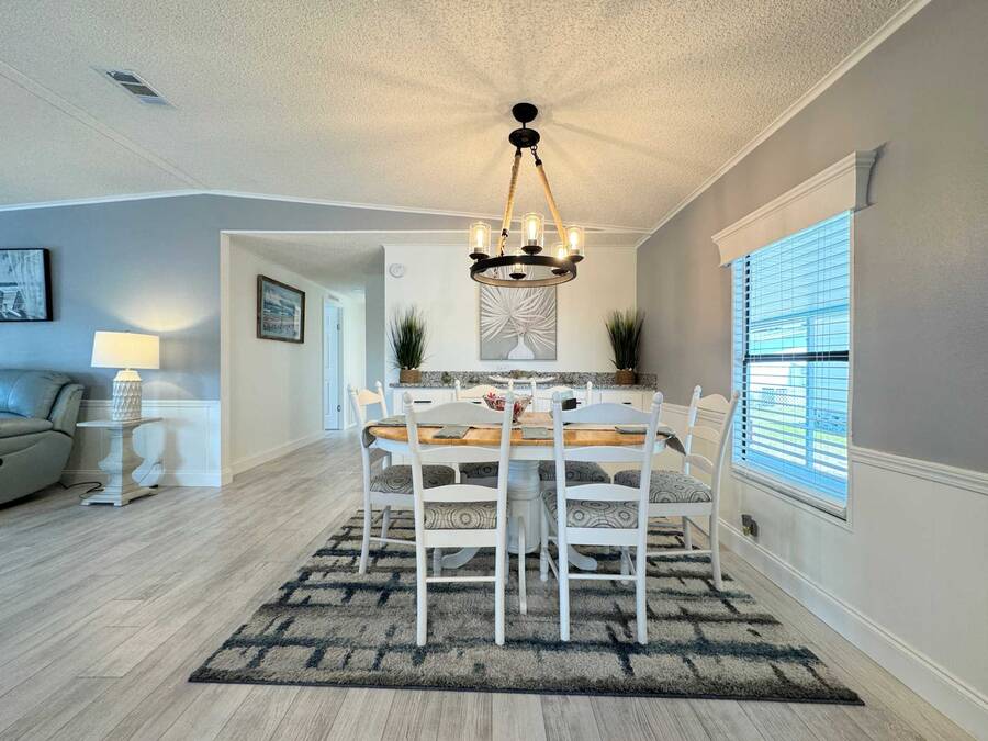 Are you searching for the perfect retirement home? Look no further! This 1,248 sq. ft. residence has been completely renovated and features new flooring, a new roof, new air conditioning, a new water heater, new tile showers, and many other upgrades! As you enter through the carport, you'll be welcomed by a spacious dining and living area, with the kitchen on the left side. Straight ahead is the living room, which boasts a stone fireplace and custom shelving. The living room walls are adorned with wainscoting and have a textured finish. The home includes a full-sized laundry room with new appliances and a Whirlpool package in the kitchen. The hallway offers a convenient storage closet, and the guest bathroom on the right features a six-foot shower that spans the width of the room. Granite finishes are present throughout the home, ensuring it will impress any visitor. The oversized guest room comes with a large walk-in closet. The fabulous master suite includes an ensuite bathroom, a spacious walk-in closet that can accommodate a California king bed, and another six-foot tile shower. There is ample parking space for up to four cars in the driveway, providing plenty of room for entertaining and creating wonderful memories with your neighbors. You won't be disappointed!
