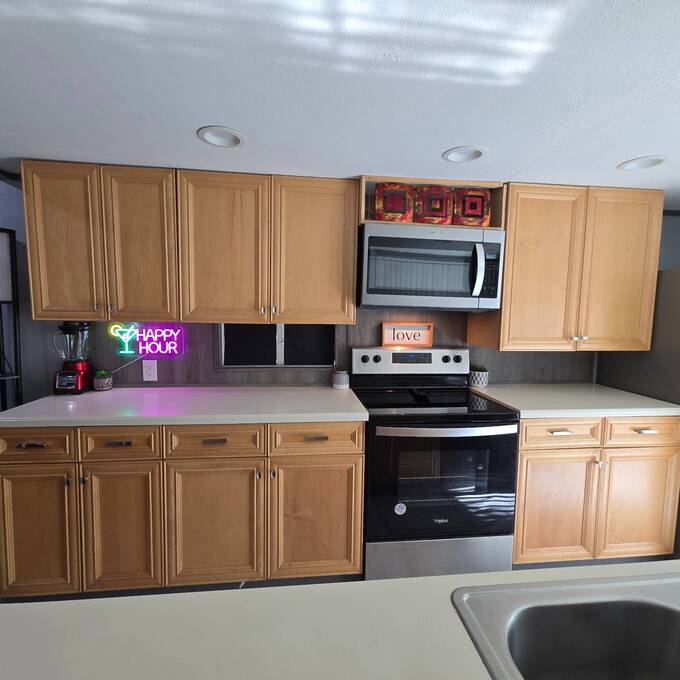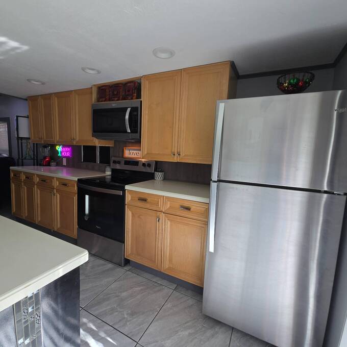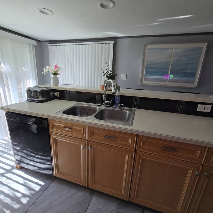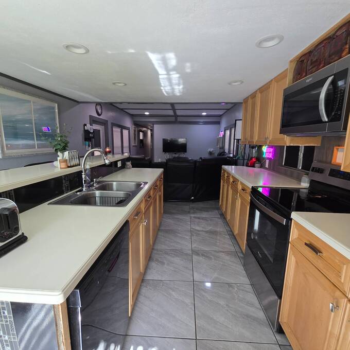 HUGE PRICE REDUCTION!!! Welcome home to the quiet community of Riverlawn MHP where all ages and pets are welcome! From the moment you walk in the door of this beautifully remodeled home you will love the open kitchen/living room area that makes entertaining a breeze! Any cook will appreciate the extrra counterspace, cabinets and all new 2024 stainless steel appliances including Refrigerator, Stove, Built-in Microwave and dishwasher! The lovely primar bedroom is located in the home for privacy and includes an adorable 1/2 bath in room! The full bath boasts a remodeled Tub with shower, vanity, tall potty and storage for all your linens! Step outside to you 30x10 porch to enjoy your morning coffee and a glass of wine in the evening. Need an extra room for an office, sheshe/mancave, or bedroom? You will love the 24x12 room with it's own a/c unit located in the carport area. The possibilities of use for this room is endless! No more going to the laundry mat for you, as you have your own new 2024 washer and dryer right outside your door. The two car carport provides for 2 car covered parking. Take a walk to the river and enjoy the boat dock. Boat slips are $25 a month if available! Close to shopping, restaurants and entertainment. All this and low monthly lot rent of $625. Hurry this gem will not last long! All information is believed to be true and accurate.