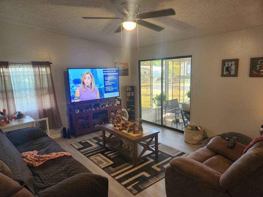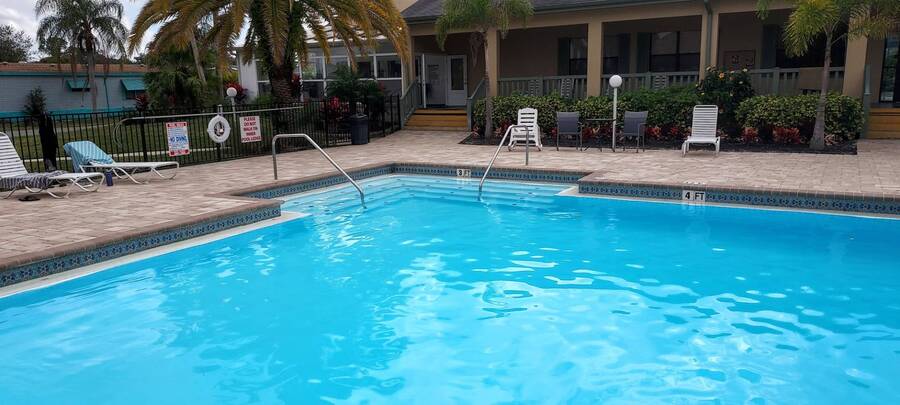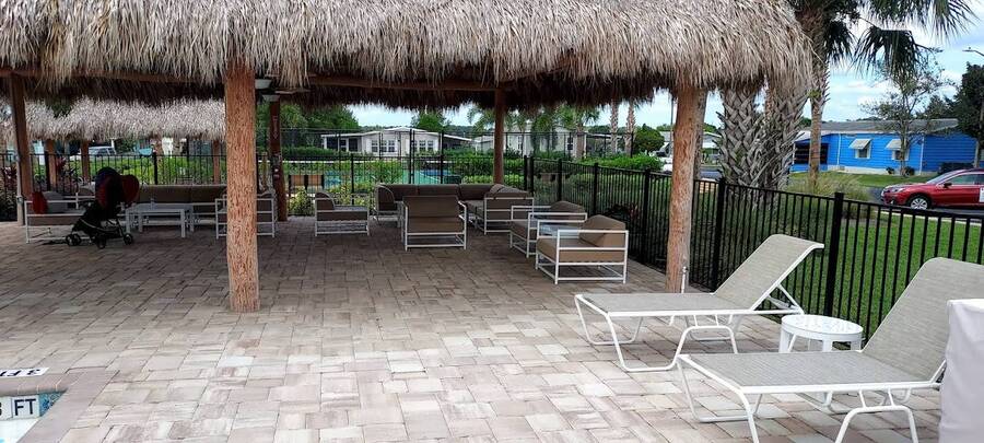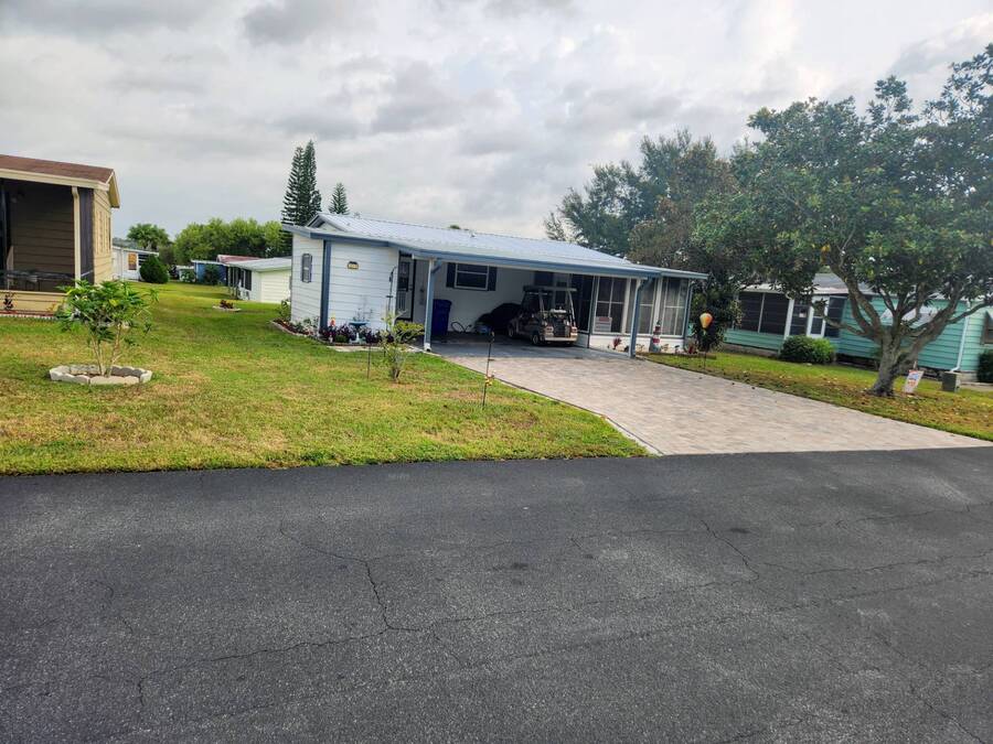 Dec 2024 New AC, 2022 Metal Roof, No Polybutylene Pipes, Double Stone paver driveway and carport. Vinyl Plank Flooring everywhere! Close to the Clubhouse! Large Florida room on the front of the home with vertical sliders. Home was updated 2022! Storage shed attached to the home. Located in the very desirable 55+ Foxwood Village, a Spectrum Community with 250+ Channels and 4 mbps high speed internet. Foxwood Village is an active 55 community that is pet friendly and offers great amenities like: Clubhouse with too many activities to mention, Dog Park, Exercise Room, Pickle Ball Court, Corn Hole, Putting Green, Firepit, Heated Pool, Tiki Huts, Rec Room, Hot Tub, Showers, Security Cameras, Social Clubs! Conveniently located near shopping, restaurants, medical facilities and just a short drive to popular Florida attractions! Home sold 'As Is' without warranties or guarantees by seller and/or Broker. All listing information is deemed reliable but not guaranteed and should be independently verified through personal inspection and/or by appropriate professionals. The monthly fee package includes: Land-lease, Spectrum Cable/Internet, Taxes and Use of Resort Style Amenities, buyer assumes full responsibility for obtaining all current rates of lot rent, fees, or pass-on costs associated with the community, park, or home from the community/park.