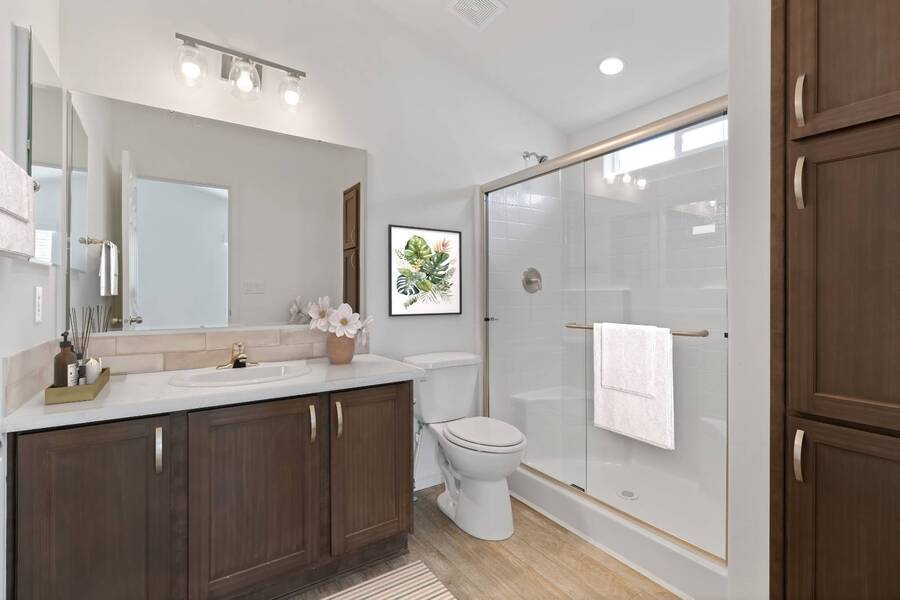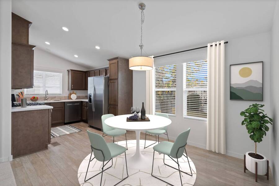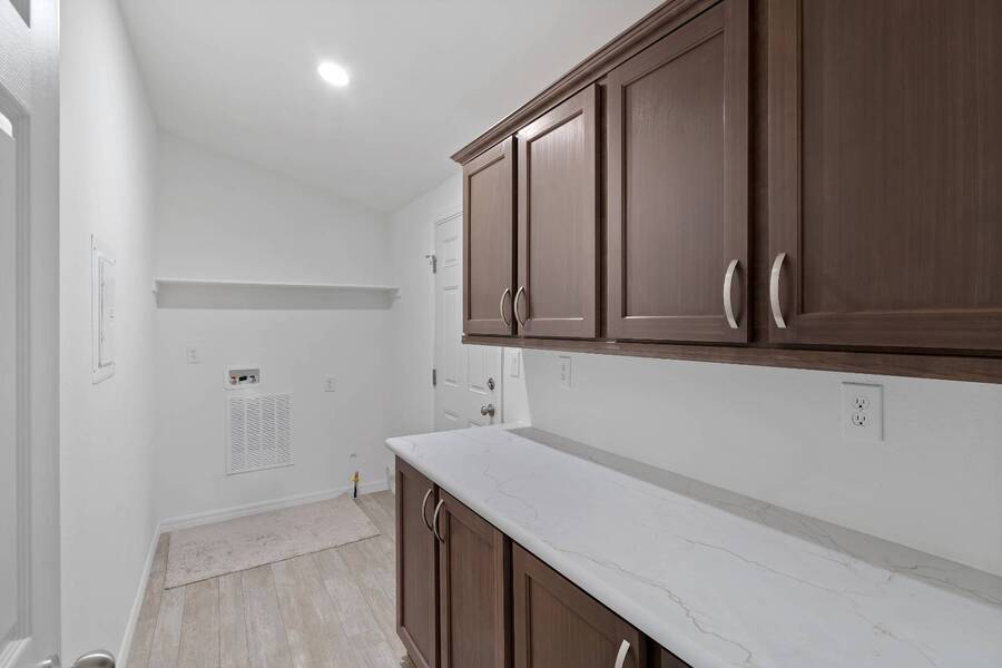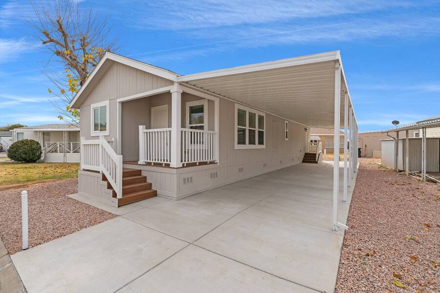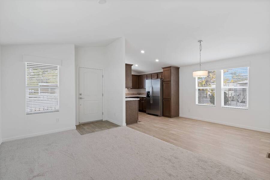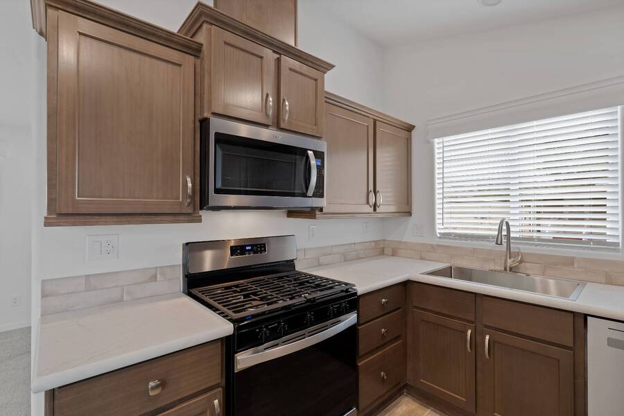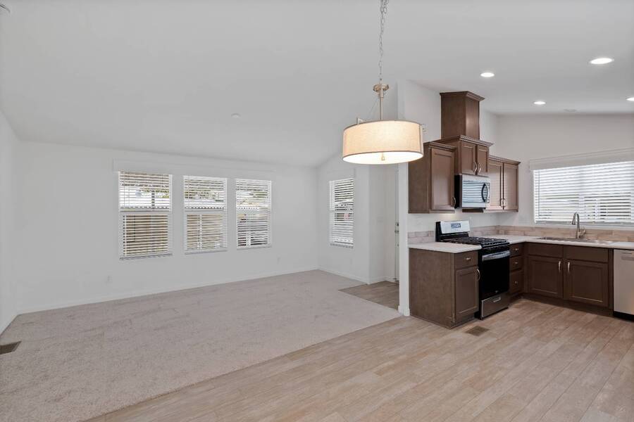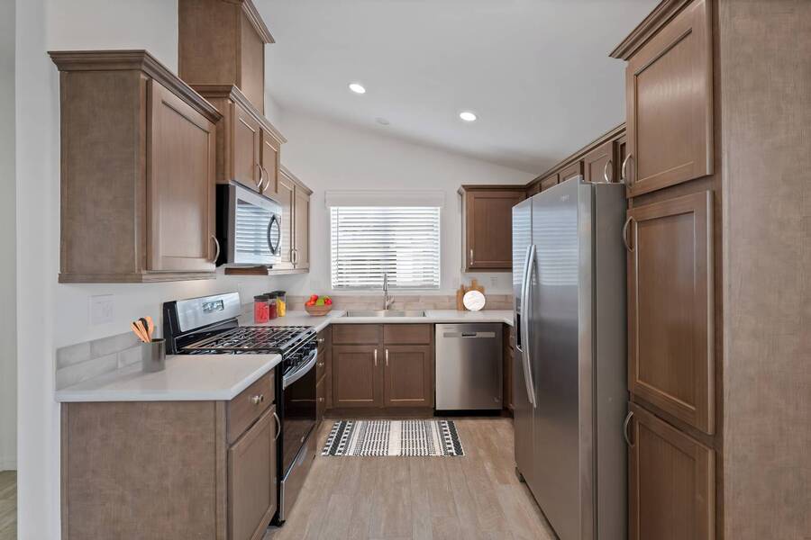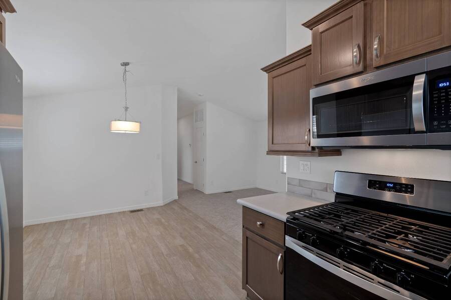 Brand New 2025 Cavco Home - Stylish, Spacious & Affordable! Be the first to own this beautiful brand-new 2025 Cavco home featuring 2 bedrooms and 2 full bathrooms designed with comfort and modern living in mind. Step into the open-concept great room showcasing 9-foot ceilings, elegant crown molding, base trim, and a combination of laminate and carpet flooring that creates a warm yet contemporary feel. Natural light fills the space, enhanced by LED lighting throughout, along with window blinds and cornices for added privacy. The kitchen is both functional and attractive, offering 42-inch oak cabinetry with soft-close doors, satin nickel fixtures, and a full Whirlpool stainless steel appliance package - perfect for everyday living or entertaining. A convenient bonus laundry room/pantry located at the side entrance provides additional storage and efficiency - a feature homeowners truly appreciate. Special Financing Available - Now Through April 30, 2026! Take advantage of 30-40 year financing with only $5,000 down at 3.99% interest (OAC). Don't miss this outstanding and affordable homeownership opportunity. Call today to schedule your private showing!