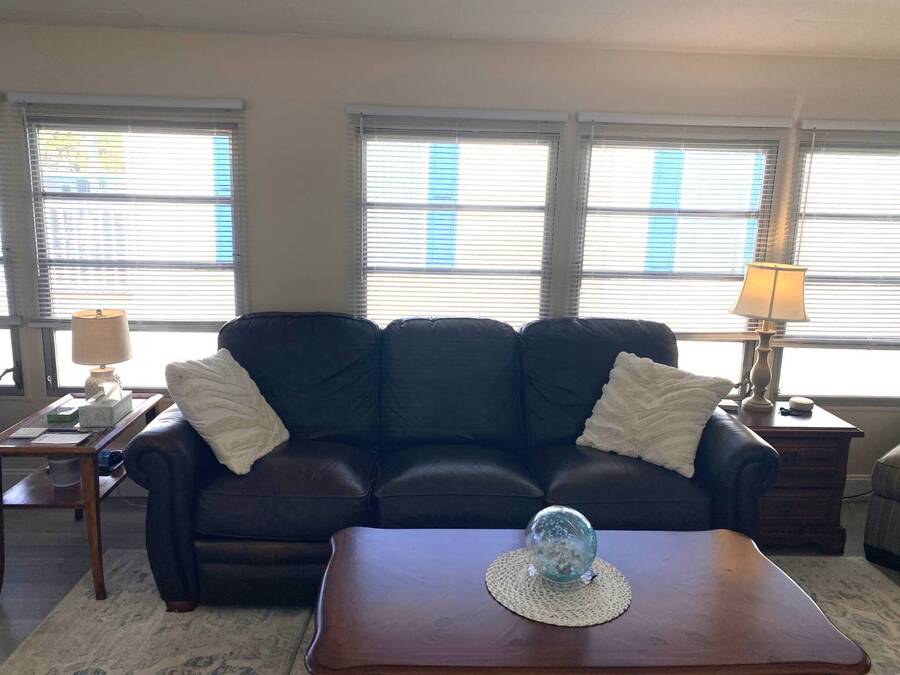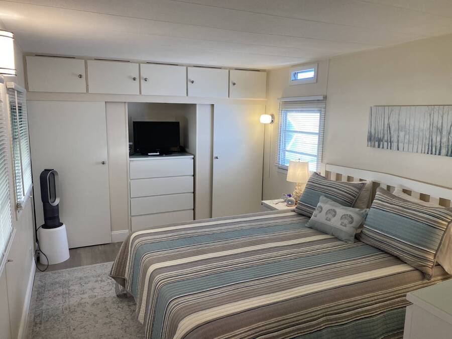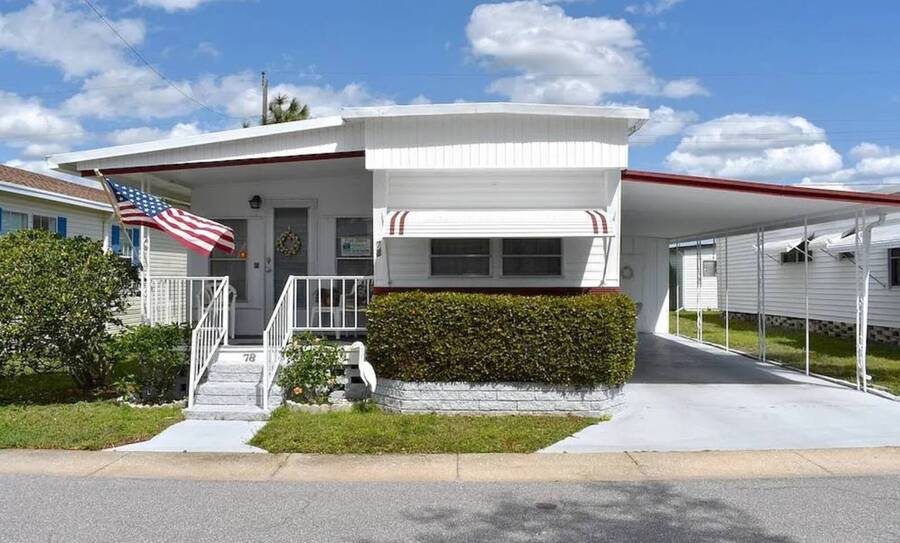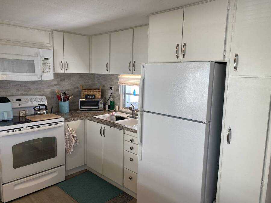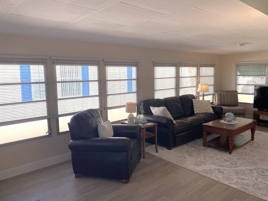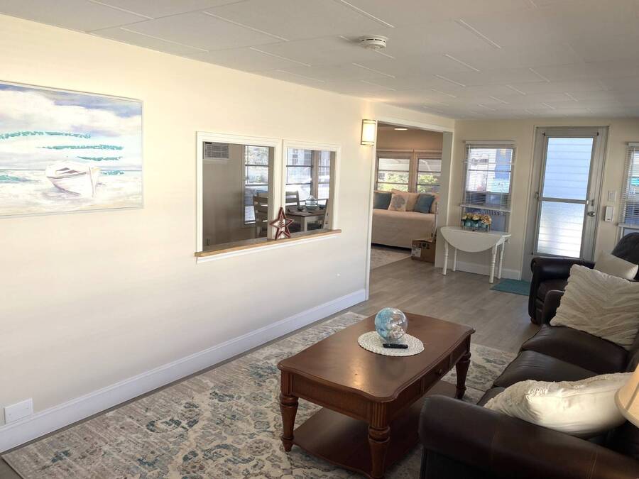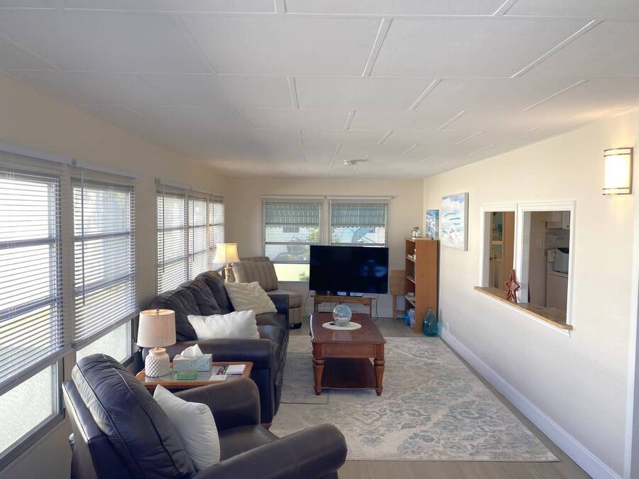 This beautifully updated, recently power-washed, 1-bedroom, 1-bath, fully furnished home is located in the premium resort community of Lake Haven, a 55-plus community in delightful Dunedin, FL. The home has over 800 sq. ft., with partial drywall walls, updated laminate floors, an updated bathroom with a walk-in shower, modern furniture, new blinds throughout, and coastal canvas art. The add-on living area is 10' x 25' with updated laminate floors, a leather sofa and leather recliner chair, new blinds, and lots of windows, which make the space nice and bright. The dining area has a newer high-powered built-in A/C unit and a dining room table by Ashley with seating for six. Right off the dining area is a trundle daybed that can sleep two guests comfortably. The kitchen has a newer refrigerator and full-sized electric stove, updated countertops, tiled backsplash, a built-in microwave, and plenty of cabinets. The primary bedroom has plenty of closet and storage space, an IKEA queen bed, and a newer window A/C unit. The Dyson heat fan keeps the space nice and warm. The renovated bathroom has a new walk-in shower, toilet, vanity, and updated coastal laminate floors. The home has a rebuilt covered front porch, an attached shed with a newer full-sized washer and dryer, and the carport can accommodate two cars. The home has recently been Power-washed. The home is only a short walk to the social clubhouse, pool, and Tiki Island. Start living the Florida lifestyle in this turnkey updated home while enjoying the Gulf breeze. Lake Haven is a beautiful 55-plus premium community located in delightful Dunedin, FL. Amenities include three pools, a clubhouse, gym, shuffleboard, horseshoes, and fishing. Lot rent of $1,200.00 per month includes water, sewer, trash, lawn care, and all the park amenities. Pet-friendly community - 2 pets under 30 lbs. -- CASH ONLY --