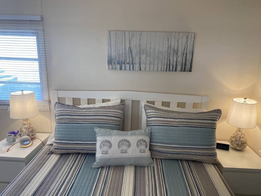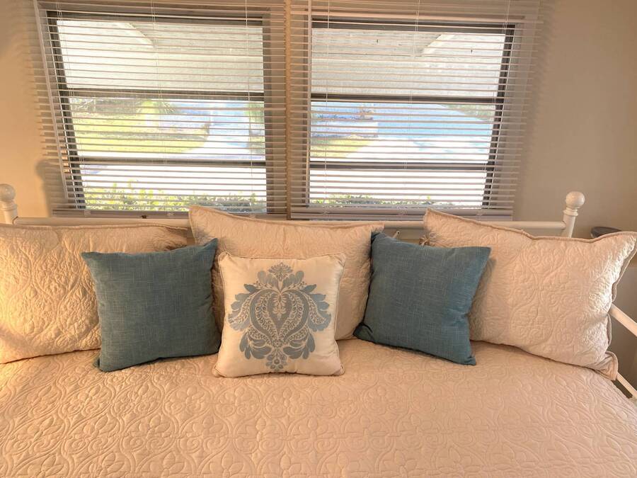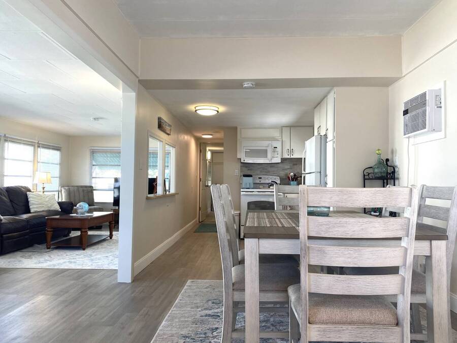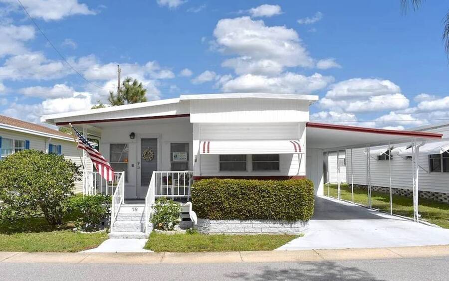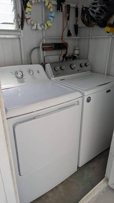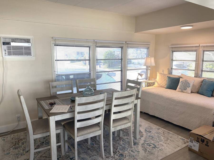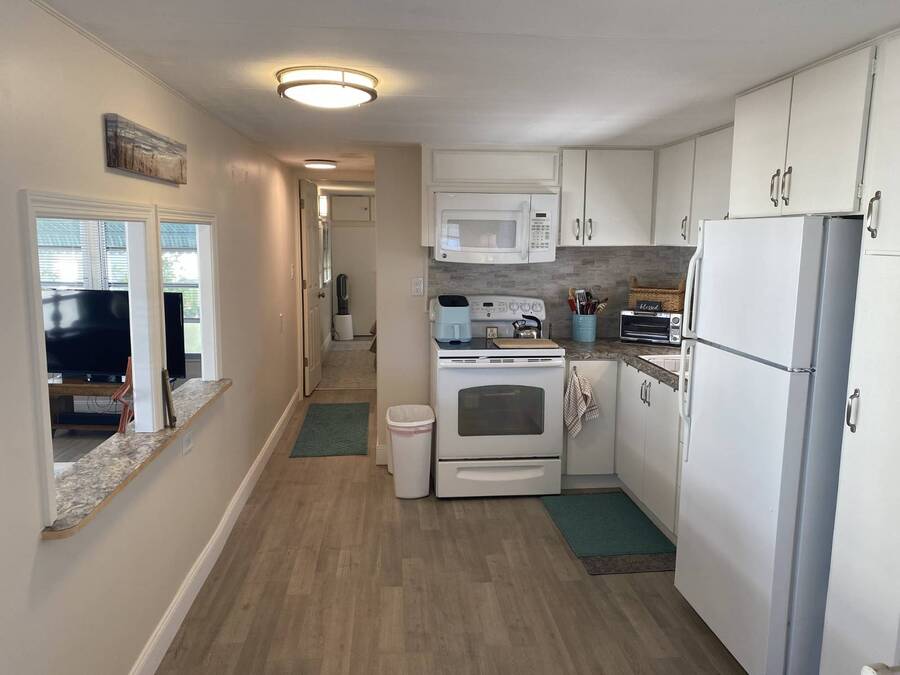 This beautifully updated, recently power-washed, 1-bedroom, 1-bath, fully furnished home is located in the premium resort community of Lake Haven, a 55-plus community in delightful Dunedin, FL. The home has over 800 sq. ft., with partial drywall walls, updated laminate floors, an updated bathroom with a walk-in shower, modern furniture, new blinds throughout, and coastal canvas art. The add-on living area is 10' x 25' with updated laminate floors, a leather sofa and leather recliner chair, new blinds, and lots of windows, which make the space nice and bright. The dining area has a newer high-powered built-in A/C unit and a dining room table by Ashley with seating for six. Right off the dining area is a trundle daybed that can sleep two guests comfortably. The kitchen has a newer refrigerator and full-sized electric stove, updated countertops, tiled backsplash, a built-in microwave, and plenty of cabinets. The primary bedroom has plenty of closet and storage space, an IKEA queen bed, and a newer window A/C unit. The Dyson heat fan keeps the space nice and warm. The renovated bathroom has a new walk-in shower, toilet, vanity, and updated coastal laminate floors. The home has a rebuilt covered front porch, an attached shed with a newer full-sized washer and dryer, and the carport can accommodate two cars. The home has recently been Power-washed. The home is only a short walk to the social clubhouse, pool, and Tiki Island. Start living the Florida lifestyle in this turnkey updated home while enjoying the Gulf breeze. Lake Haven is a beautiful 55-plus premium community located in delightful Dunedin, FL. Amenities include three pools, a clubhouse, gym, shuffleboard, horseshoes, and fishing. Lot rent of $1,200.00 per month includes water, sewer, trash, lawn care, and all the park amenities. Pet-friendly community - 2 pets under 30 lbs. -- CASH ONLY --