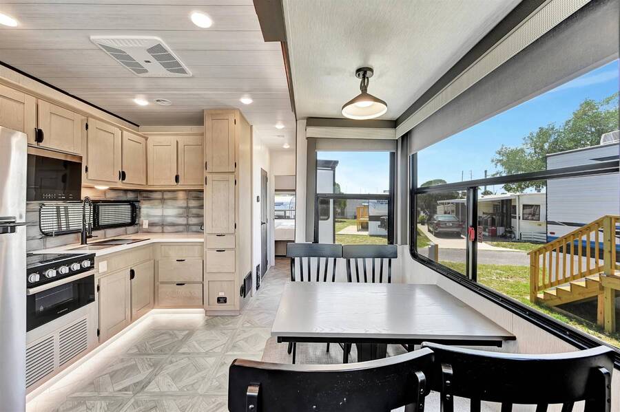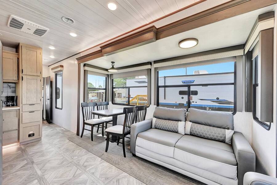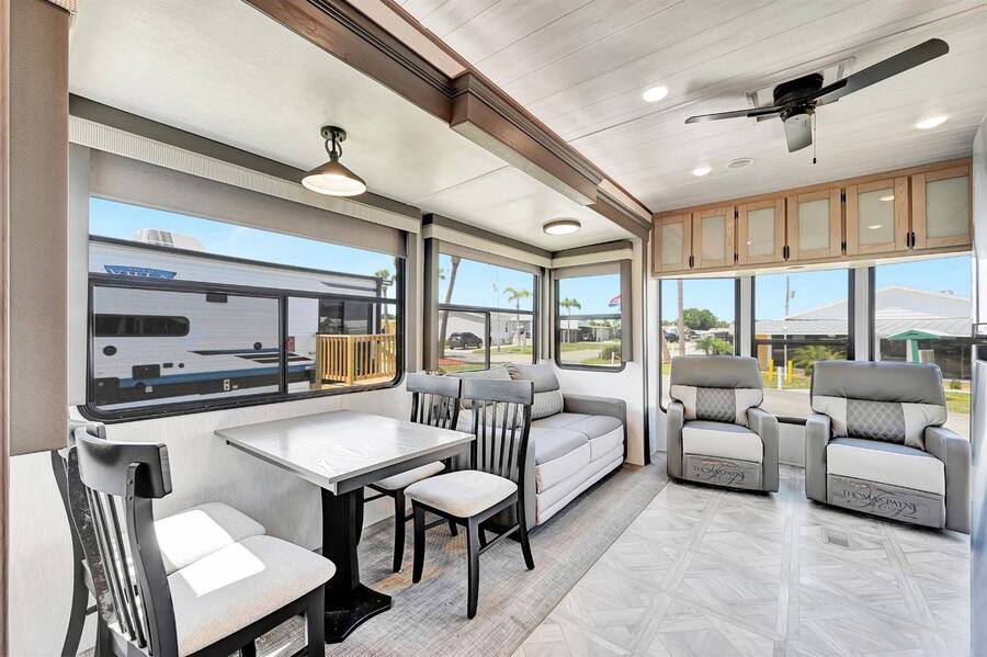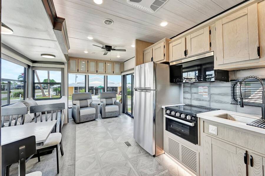55+ Community. BRAND NEW SALEM VILLA SEASONAL RENTAL AT SUNNY PINES - Minimum 3 months. Don't miss your opportunity to vacation in this beauty! This fully -furnished deluxe Salem Villa destination trailer features a spacious luxurious interior with all of the comforts of home! You'll love relaxing in the large living room area complete with plush recliners and a sofa, listening to your favorite music on the Bluetooth soundbar, and enjoying the soothing sights of the stunning electric crystals fireplace! The expansive, fully-stocked kitchen features stainless steel appliances, tiled backsplash, ample cabinet space, and LED floor lighting. You will absolutely love the large master bedroom with luxurious king versa tilt bed with Serta mattress, and plenty of storage and closet space. The expansive bathroom features a 50" walk-in shower complete with skylight! Sunny Pines is a friendly 55+ community in the heart of Sebring! You'll love the resort-style heated swimming pool, shuffleboard, clubhouse with billiards room and plenty of activities! CALL TODAY TO MAKE YOUR RESERVATION WHILE STILL AVAILABLE! $1,550 per month November through March, $1350 per month April through October. Electricity, water/sewer/internet included.