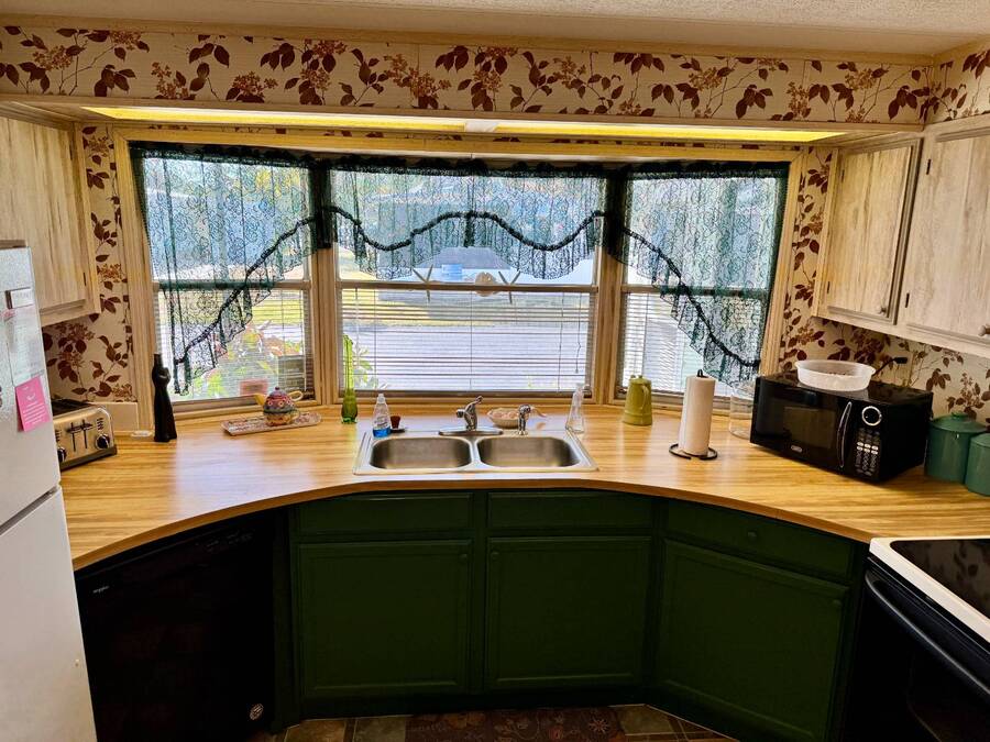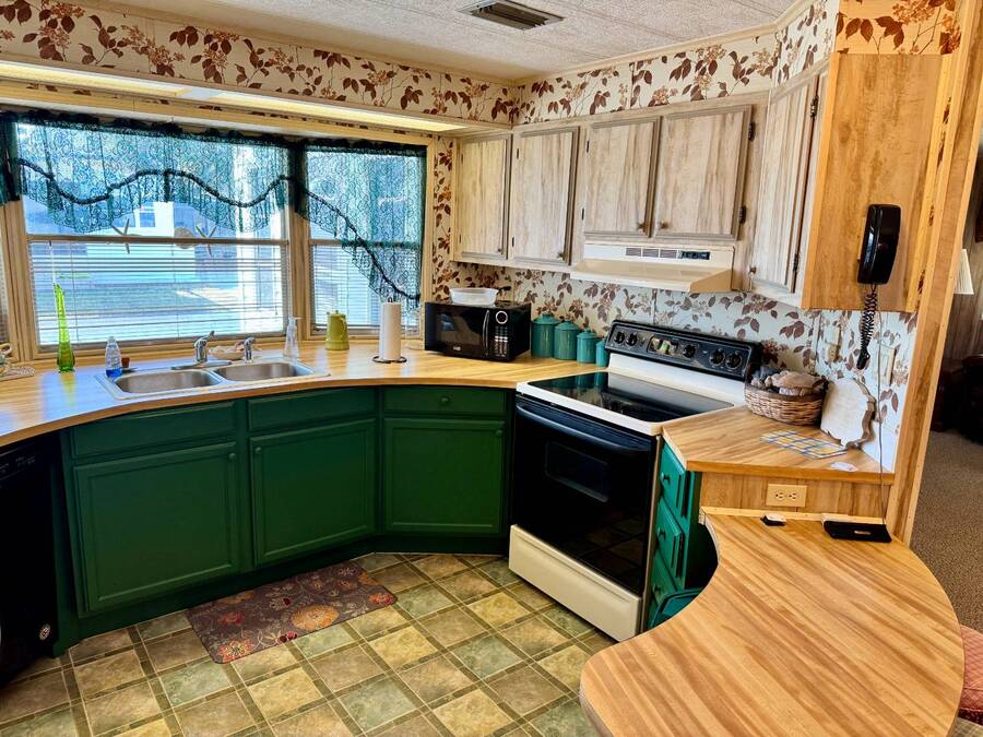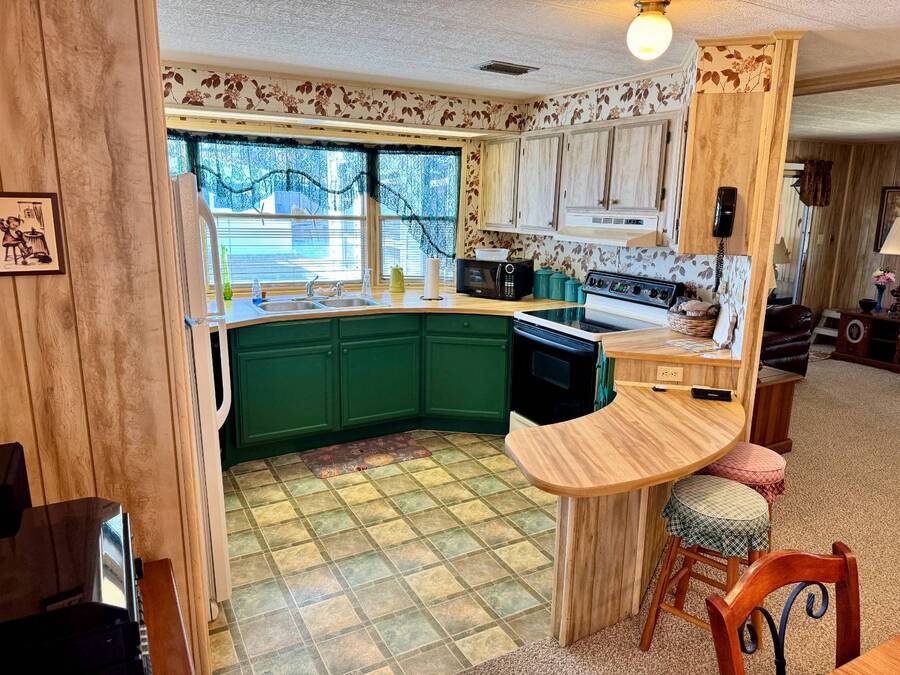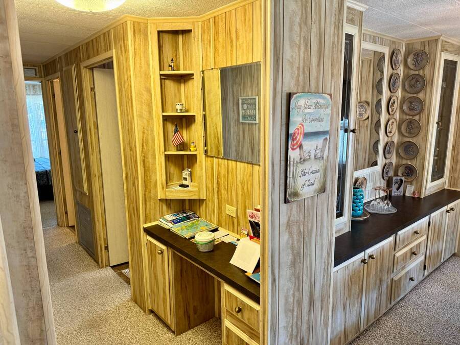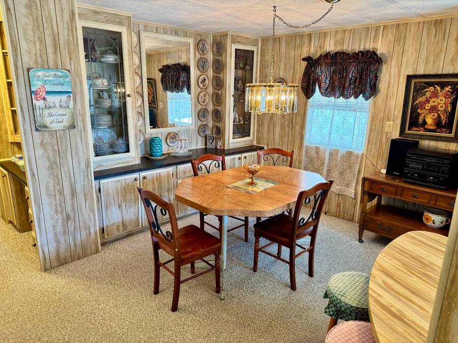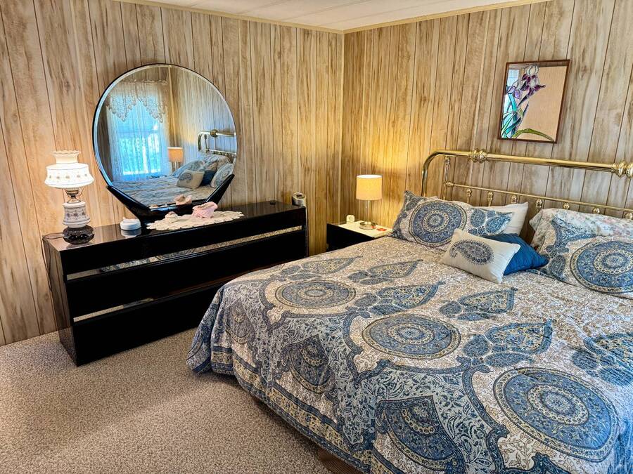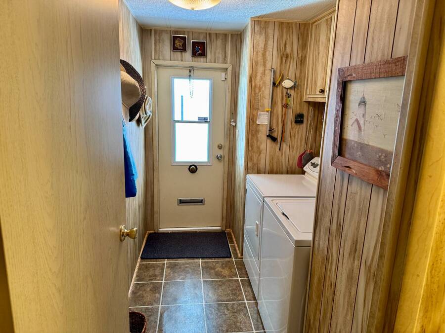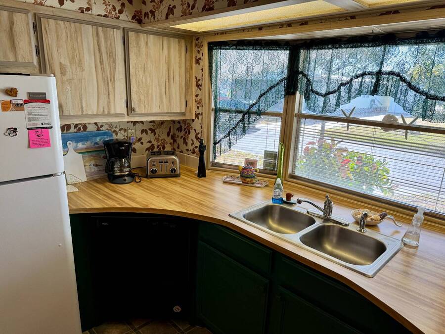Welcome to your dream home! Situated on a desirable perimeter lot for added privacy, this beautifully maintained 1981 double-wide offers 2 bedrooms and 2 bathrooms with thoughtful features throughout. The fully-enclosed lanai with glass windows, screens, and a wall-mounted air conditioning unit creates an additional versatile year-round living space, perfect for relaxing or entertaining. Inside, the open floor plan boasts a large living room that flows seamlessly into the kitchen and dining area. The dining room features built-in storage, ideal for displaying your treasures or keeping everything organized. The kitchen is a cook's delight, complete with bay windows above the sink, a convenient breakfast bar, dishwasher, and a pantry for ample storage. A built-in desk and storage area in the hall provides the perfect spot for a home office or organizing daily essentials. The indoor laundry room adds convenience with even more storage options. The large guest bedroom features a walk-in closet and easy access to a full bathroom with a tub-shower combo. The primary suite, spanning the full width of the home, is a tranquil retreat with floor-to-ceiling bay windows, roll-down shutters, and two spacious closets. The suite also includes a built-in vanity and an en-suite bathroom with abundant storage and a step-in shower. Its perimeter lot location on a cul-de-sac road offers added privacy and space, this home is the perfect combination of functionality, charm, and comfort. This home is centrally located in Bradenton, just a few miles north of the Sarasota Bradenton International airport and about 15 minutes to Gulf Coast beaches. Bayshore Windmill Village is a gated, land lease community offering resort-style living for active adults. Normally a 55+ community, it is now welcoming residents 45+ for a limited time. Enjoy a clubhouse, swimming pool, shuffleboard, library, pool table, and a calendar full of organized activities. Lot rent is $1,173 and includes trash, tax pass-through, lawn maintenance, and use of all park amenities. Now pet-friendly-bring up to two pets, totaling 40 lbs. Subleasing is permitted with age and background application approval, at the discretion of management. AGENT MUST SHOW BY APPOINTMENT 603 63rd Ave W Lot T-13 (Park Street- Avenue T West) Bradenton, FL 34207