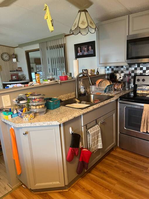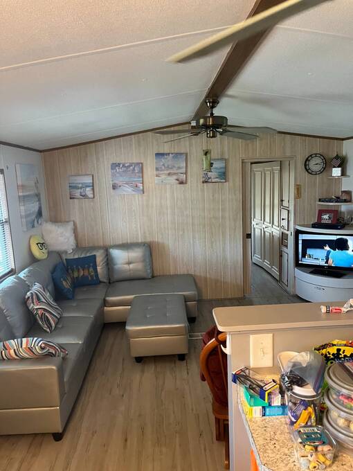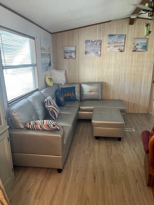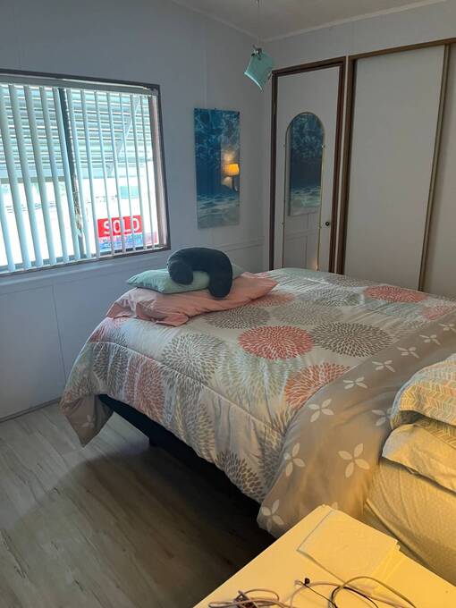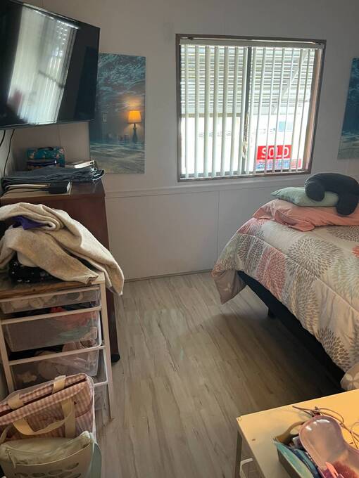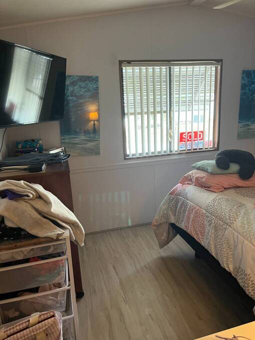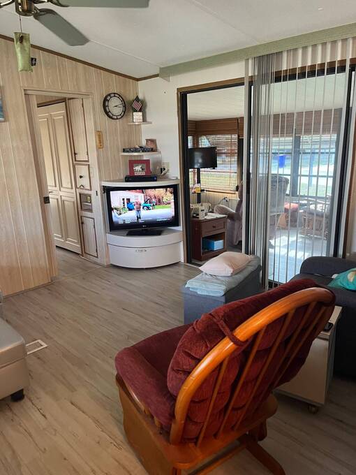 -Spacious living areas- -Tons of storage- -Updated kitchen- -Gorgeous corner lot- Enjoy a bright, open-concept home with plenty of space for relaxation or entertaining. The updated Kitchen is fully equipped with modern appliances, ample cabinet space, and a functional layout for all your cooking needs. The attached Florida room with additional office space would be perfect for someone working from home, or could be easily converted to more guest space. The guest bedroom features an en-suite 1/2 bathroom for added privacy, while the larger front bedroom features a large closet. The home is in the perfect location - close to the entrance on a large corner lot. The low maintenance yard features a sprinkler system and room to garden or add a patio. The large storage shed outside offers space for all your gardening and storage needs.