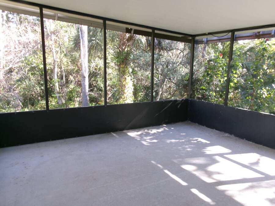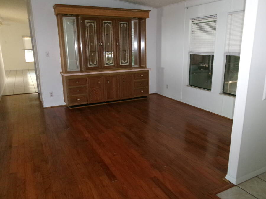 This sprawling 2-bedroom 2 bath home offers room for entertaining or just to spread out. The real wood floors and tiled bathroom, great room and kitchen give the home a nice touch of elegance. There are walls of windows throughout the home. There is a 14X20 air-conditioned Florida room and a screened lanai. The roof is a 50-year membrane roof. The A/C is 1 year old. The home is located on a private wooded lot on a cul-de-sac for maximum privacy.
