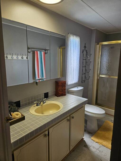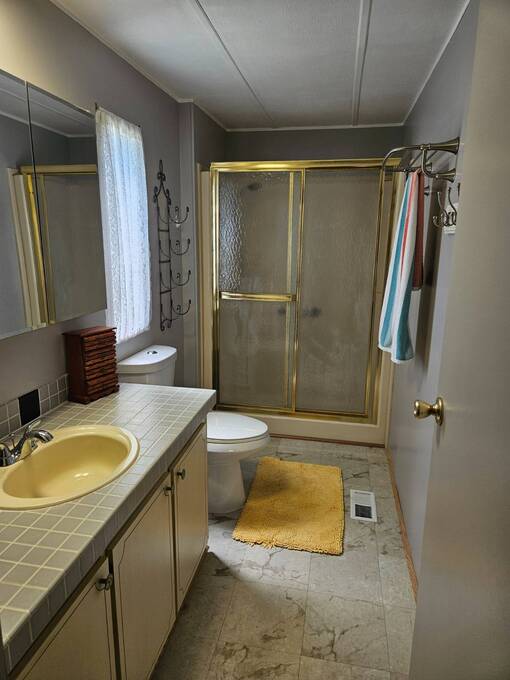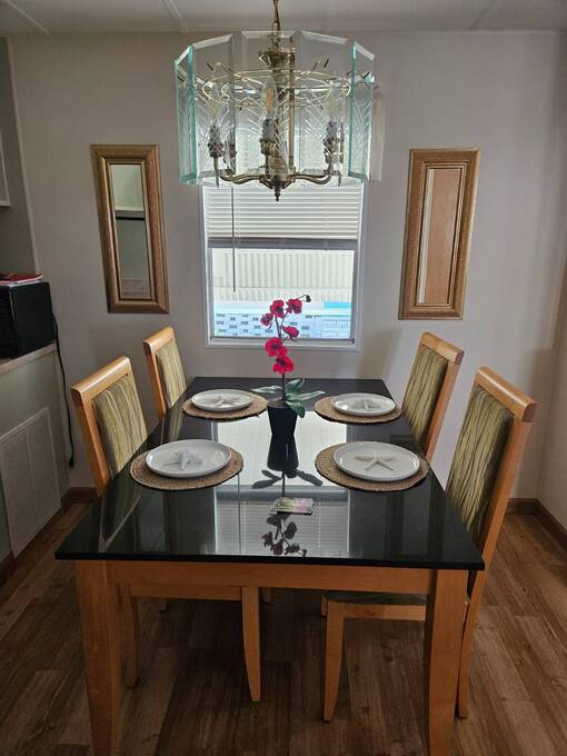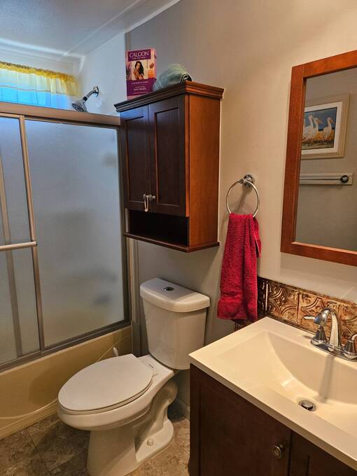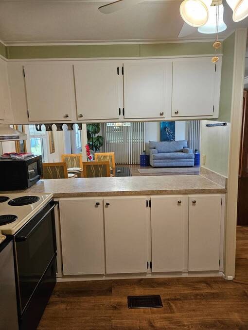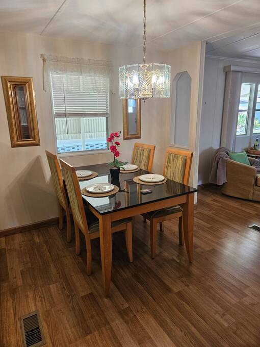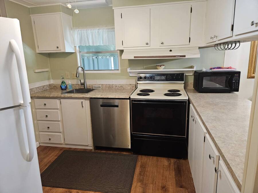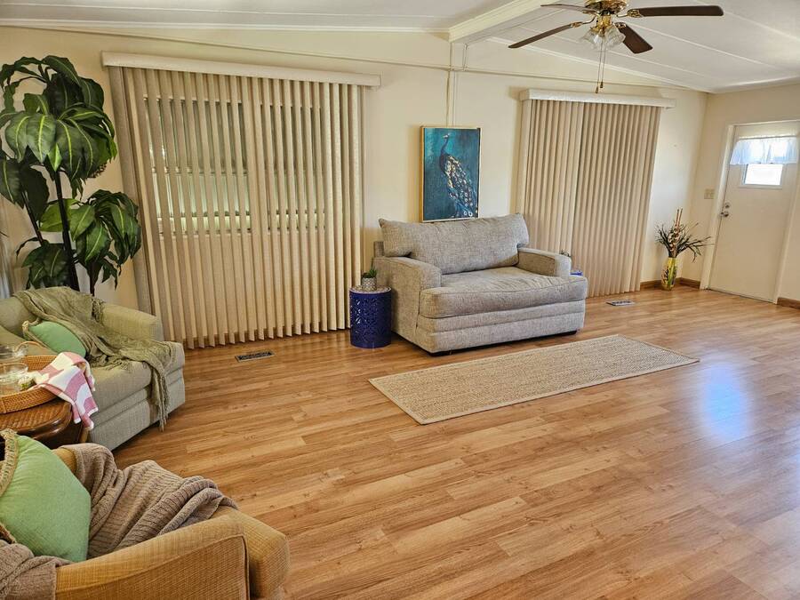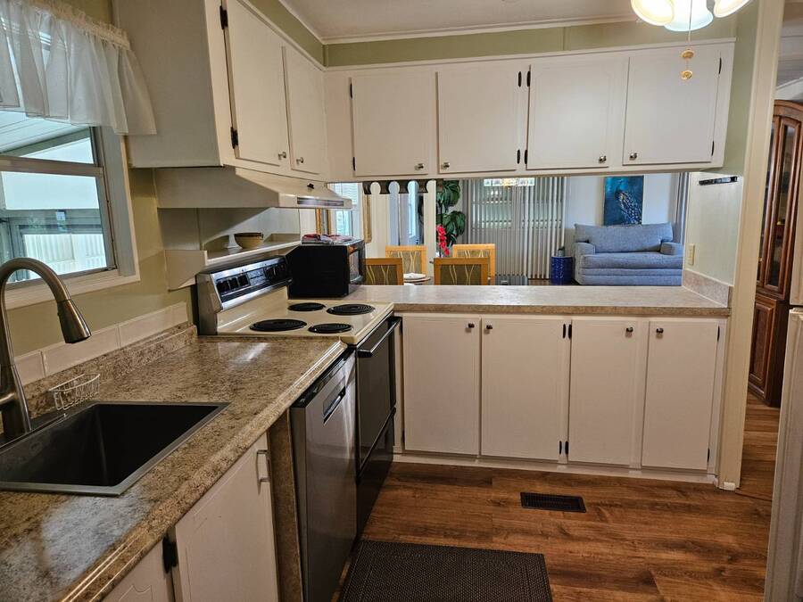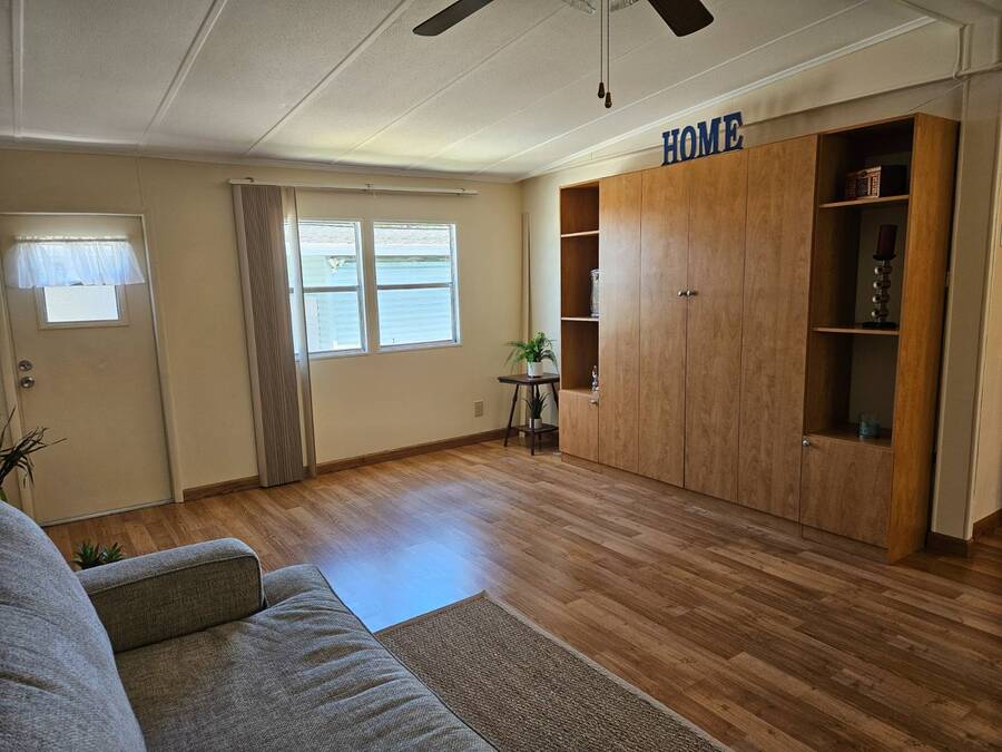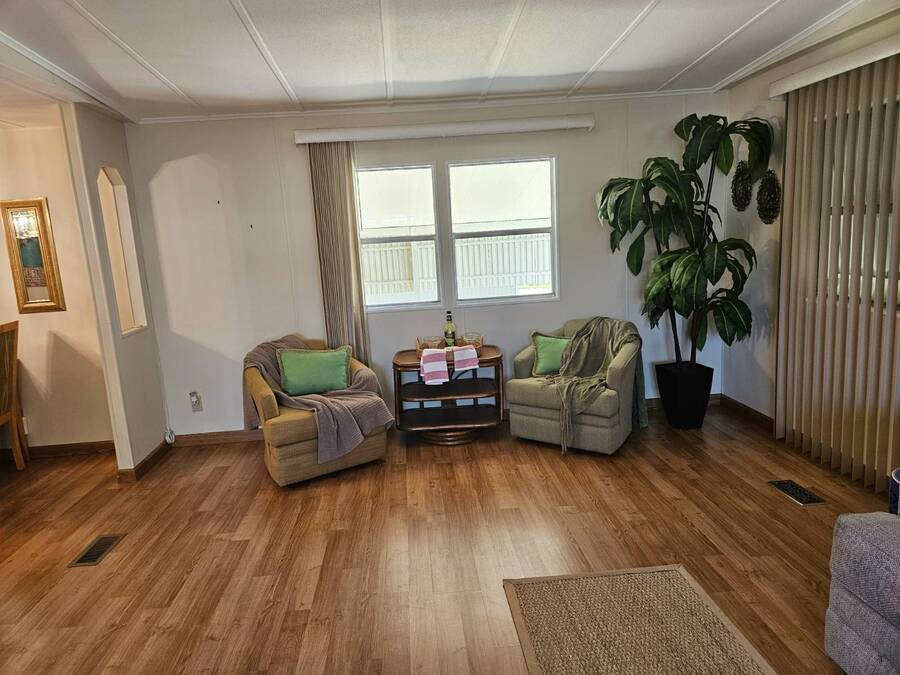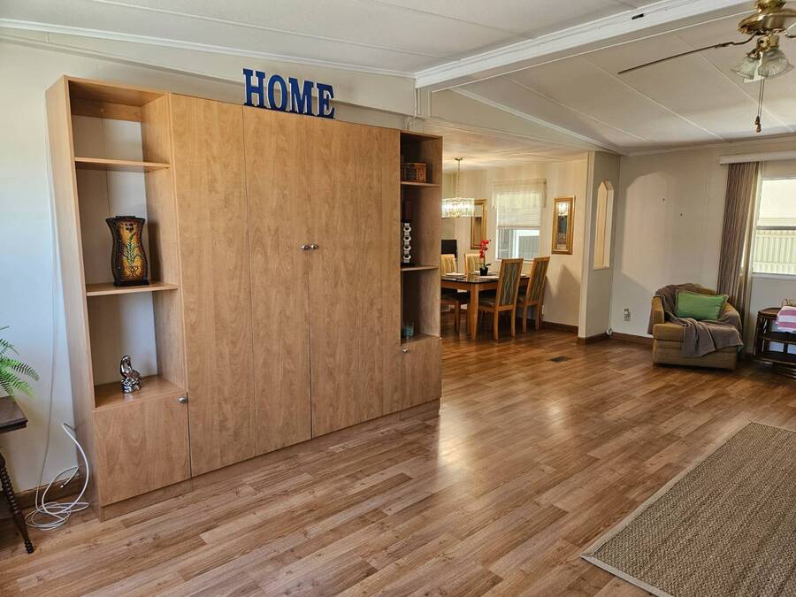 Welcome to this beautifully maintained home in Oak Bend - 55+ Community Come see this clean, inviting, and move-in ready home located in Oak Bend, a highly desirable 55+ community just one mile from the Gulf! Oak Bend offers one of the lowest monthly lot rents around and features a pet-friendly environment (2 pets, no size restrictions), a gated entrance, clubhouse, pool, shuffleboard, laundry room, and monthly community activities. Conveniently located near Bayonet Medical Center, shopping, and restaurants. Home Features: Spacious Master Bedroom - fits king-size furniture, walk-in shower, large closet Large Guest Bedroom with full closet Second Full Bathroom Open Concept Kitchen - tons of cabinets, generous counter space, plus separate dining area Bright Living Room - large enough for a sectional, includes a queen-size Murphy bed (stays) Screened Lanai - perfect for relaxing or entertaining Indoor Laundry Area - added convenience Recent Updates: Dishwasher - less than 6 months old A/C - only 1 year old Hot Water Heater - less than 1 year old Roof sealed (2 years ago) with Lanco Ultra Siliconizer - approved for High Velocity Hurricane Zones, 78% sun reflectivity to keep interior cooler and help reduce energy costs Additional Features: Covered Carport Side Screened Lanai with automatic exhaust fan for comfort Extra Storage Shed This home checks all the boxes-spacious, well-maintained, and loaded with upgrades-all in a friendly, active 55+ community.