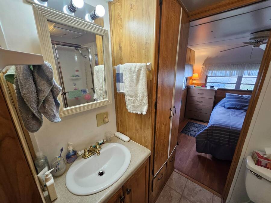 751 10th ST E OF13 Palmetto FL 34221 Palm Bay is a 55+ Mobile Home Community This is a mobile home for sale in a lot lease community. This is a 1985 1BR/1BA mobile home in pristine condition. There is laminate flooring throughout this home. There is a shed. There are ceiling fans in all the right places. The kitchen has a stove, refrigerator and microwave. Bedroom 1 has laminate flooring, a closet and mini blinds. Palm Bay is a 55 plus community that is close to lots of shopping, dining, and only minutes away from the Great Gulf Beaches.. The lot rent is ~$648 and includes water, sewer, trash, lawn and the clubhouse and a pool! A small price to pay to live in Paradise! Palm Bay Property management determines the final lot rent amount. Located in Palm Bay Mobile Home Community Florida MH Sales, LLC cannot guarantee or warrant the accuracy of any property's information, measurements, or condition. Measurements are approximate. All homes are sold, as is and a personal or professional inspection is encouraged. Additional personal property conveys 'as is' with no value. Lot rent is set by the community and is subject to change. All buyers must be approved by the community before closing on a negotiated sale contract.