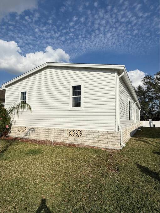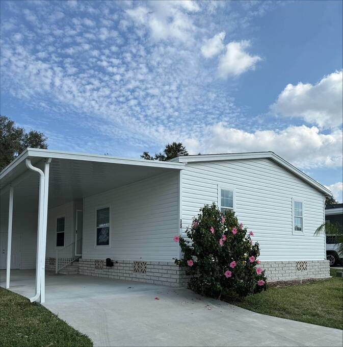 **CHARMING 3B/3B HOME IN A 55+ PET FRIENDLY GATED COMMUNITY! ** Welcome to your new sanctuary in a vibrant 55+ gated community in beautiful Winter Haven Florida! This stunning like new 2022 Scot Built Manufactured Home offers a generous 1,749 sq. ft. of thoughtfully designed living space, perfect for enjoying your golden years. This home features a spacious master suite where you can indulge in the luxury of a large master bedroom complete with His and Her private bathrooms and an expansive walk-in closet, offering plenty of storage and privacy. The home also features elegant living spaces where you can enjoy luxury vinyl flooring throughout the home, accentuated by beautiful crown molding and a tray ceiling in the living room creating a warm and inviting atmosphere. In the gourmet kitchen you can delight in your wonderful cook's kitchen featuring a large stainless farmhouse sink, all stainless appliances, ample cabinetry and a large pantry for additional storage and a layout that's perfect for entertaining. The home is equipped with comfortable guest accommodations featuring 2 spacious guest bedrooms, providing a comfortable space for visitors that are complimented by a full bathroom conveniently located in between the 2 bedrooms. A fully functional and large laundry room adds convenience to your daily routines ensuring you have all the space you need for chores. Relax outdoors and enjoy the serenity of your own screened in Florida room and covered concrete patio, perfect for morning coffee or evening relaxation. This private lot with no rear neighbors is also equipped with your very own work shed where you can also house your own golf cart helping to keep your outdoor space tidy and organized. The community of Cypress Creek Village will allow you to live your life to the fullest in this vibrant community, which boast an array of amenities like a clubhouse which is the hub for social gatherings and events. There's a heated pool & jacuzzi / spa, perfect for relaxation and fun under the Florida sun. There's also plenty of sports & recreation to enjoy like, shuffleboard, pickle ball courts and horseshoes. There's also an entertainment room featuring a billiards room and a theater room for movie nights and gatherings. Scheduled wellness activities allow you to stay active in the fitness center and you can partake in activities like bingo, card nights, water aerobics, dancing, potlucks and much more. Join a friendly community with exciting opportunities for socializing and recreation. Your dream home awaits in this beautiful like new 2022 Scot Built Manufactured Home. Call today to schedule a viewing.