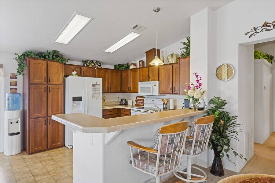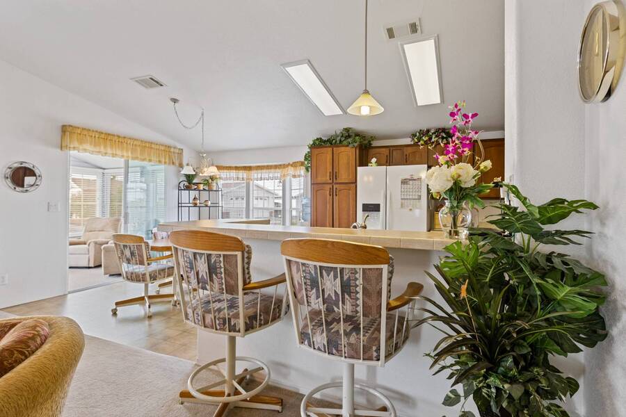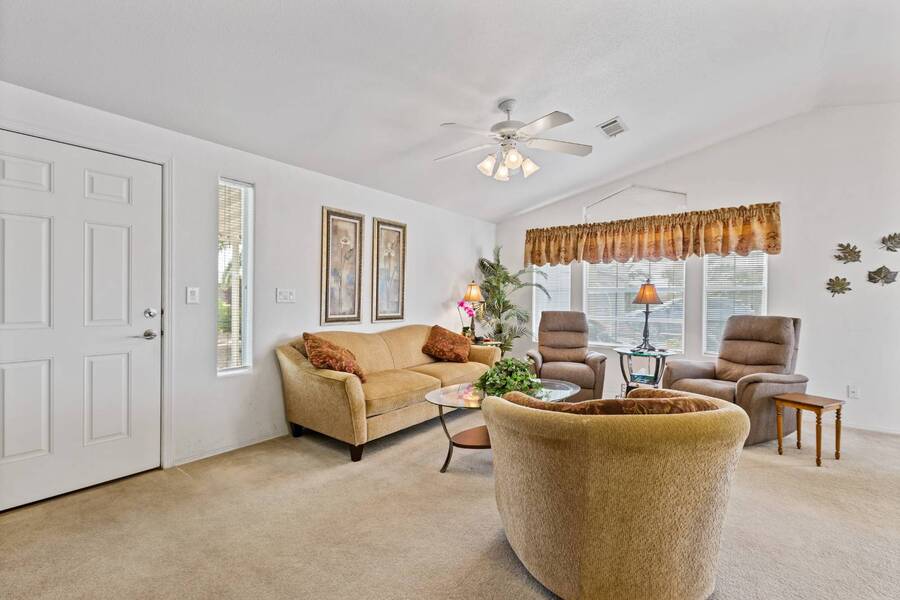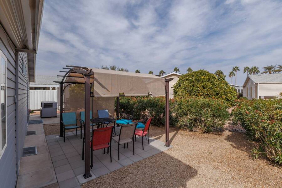 If you are looking for the perfect home in the perfect location with LOTS of outdoor living space, this is your home! This is a desirable floor plan with 2 bed 2 bath and bonus room with laundry inside. This fully furnished home is bright and cheery and clean as a whistle! All furnishings, housewares and appliances are included and lots of updates have been done, the home is pampered. Just imagine relaxing under the South facing pergola with an afternoon beverage AND just a few steps from the world class amenities the community offers you! *PRE INSPECTED HOME REPAIRS DONE*LOTS OF GREAT UPDATES*PRIME LOCATION/GREAT OUTDOOR SPACE Experience Thesman Communities Lifestyle, we are an active 55 plus community where luxury meets affordability. For over 40 years we have set the standard with world class amenities and year-round activities. Our community is a 24-hour gated community, with a beautiful 30,000 square foot clubhouse including ballroom, fireside lounge, library with computers and individual rooms for cards, billiards, arts & crafts and fitness center. Enjoy outdoor amenities heated pool & spa with cabanas, BBQ area, putting green, pet park, sport courts for pickleball, tennis, bocce, shuffleboard and basketball. Our activities director assures a full calendar of social and recreation events. Our shuttle bus makes it easy and convenient to attend sporting and special events, plus local shopping. Whether you want to relax or stay active our vibrant communities offer everything you need to enjoy life to the fullest. Discover Thesman Communities and start living the Thesman Lifestyle today!