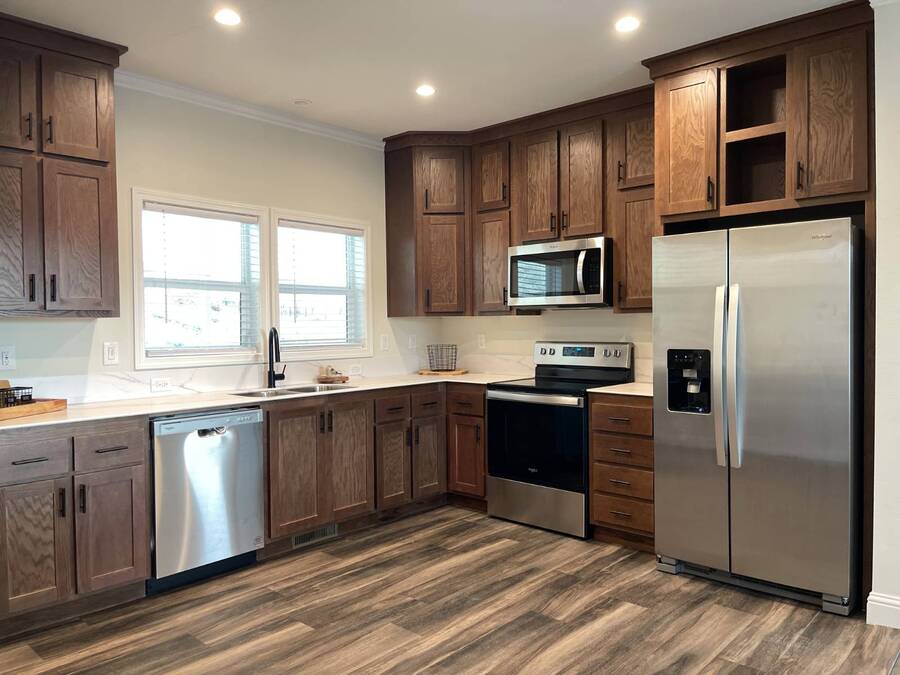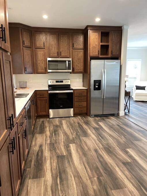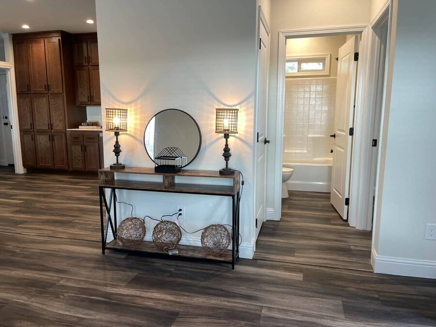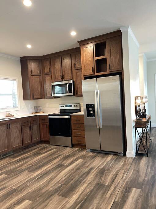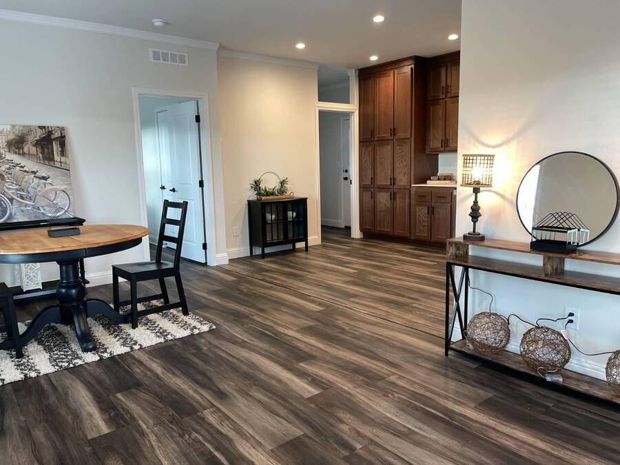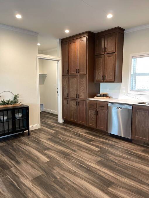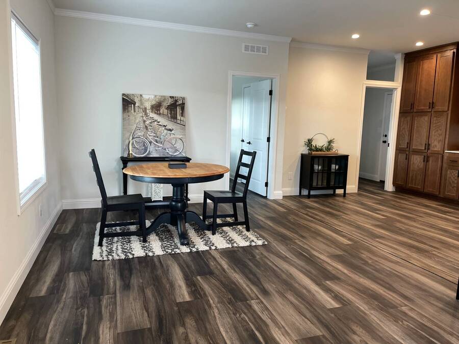 Beautiful features both inside and out. This 2 bedroom, 2 bath home featuring large carport, linoleum floors throughout, 9' flat ceilings with recessed lighting, soft close shaker cabinets topped with lovely marble countertops. This home has never been lived in and comes equipped with covered porch, covered parking and surrounded by hills of cattle land. All the upgrades such as walk-in closets and crown molding make this home feel luxurious inside. Located in an all ages Manufactured Home Community featuring a walking trail, community center, dog park and will soon feature a community garden. Located in Plymouth, walking distance to upscale restaurants, wonderful Farmers Market, coffee shops and the gateway to Shenandoah Valley wineries.