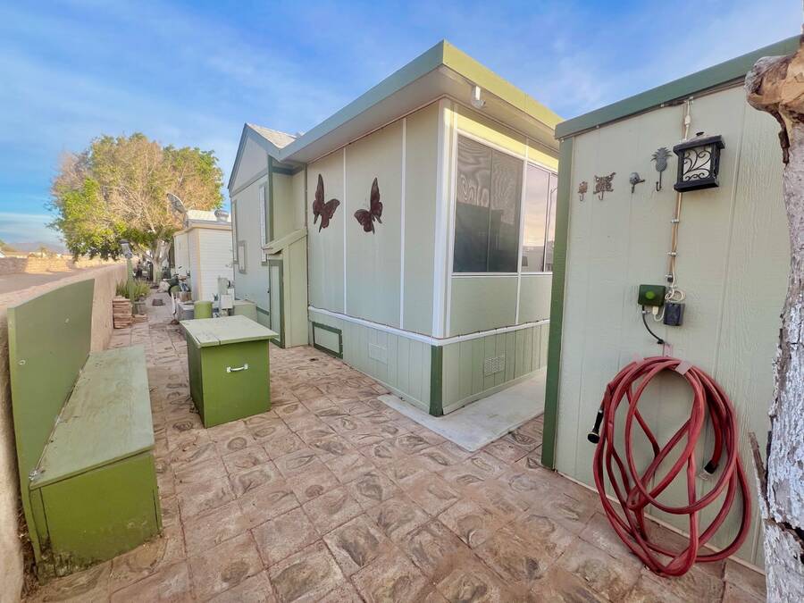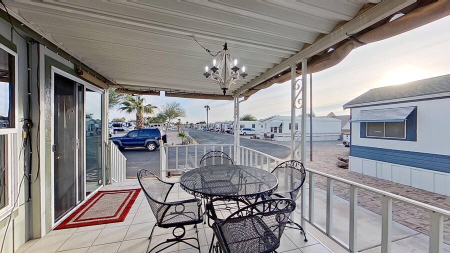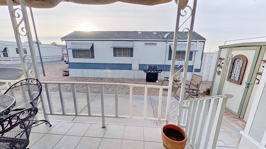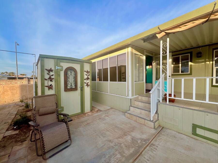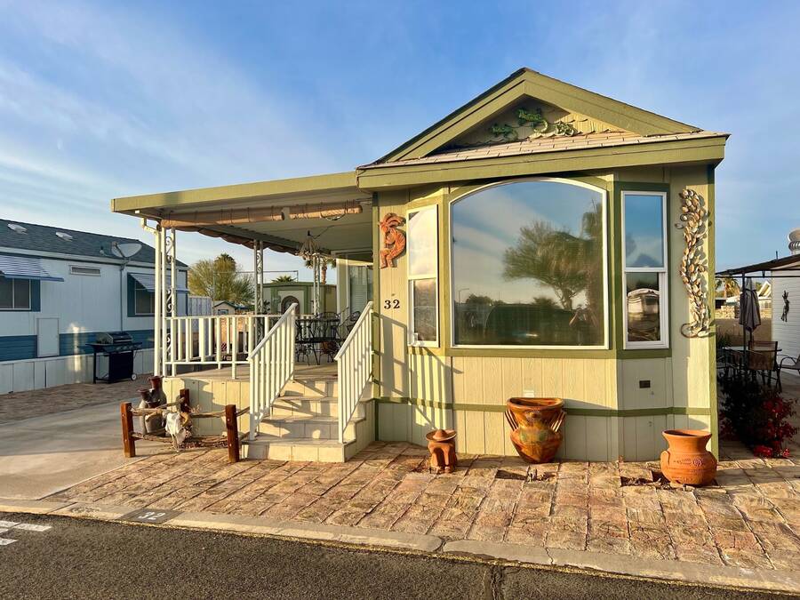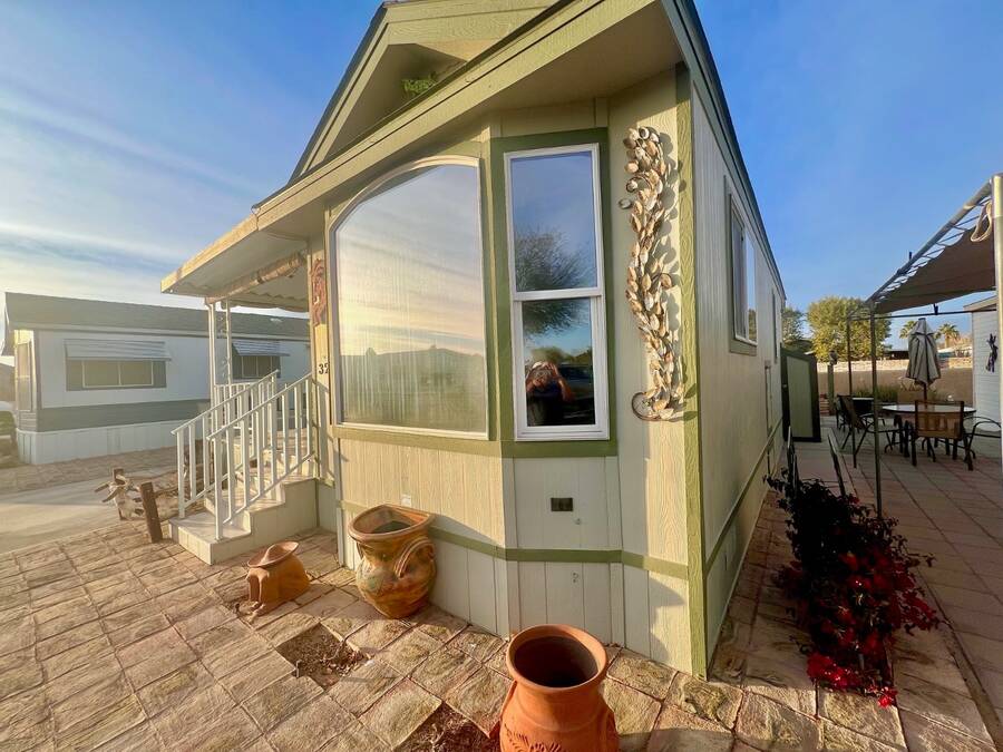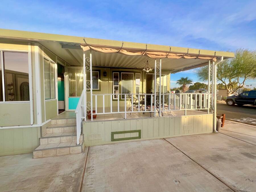 Park Model For Sale in Bonita Mesa Resort 1 Bedroom, 1 Bathroom Extra-Wide Lot with Tile Pavers Covered Tile Deck - Perfect for dining & entertaining with rope lighting and chandelier ambiance. Features: ️ Spacious living, dining, and kitchen area Full-size shower for comfort ️ King-size bed for ultimate relaxation Large Arizona room - Ideal for guests or extra space Advanced water system with Reverse Osmosis & water softener Resort Amenities: Giant community center with pool for ultimate relaxation Shuffleboard & pickleball facilities for active fun Pool tables & poker tables for socializing Exercise room with top-quality equipment Weekly Wednesday night dances Safe, walkable, and vibrant community spirit Prime Location: Faces large open areas both front AND back, making it the perfect retreat! Call today to tour this beautiful home and discover the Bonita Mesa lifestyle!