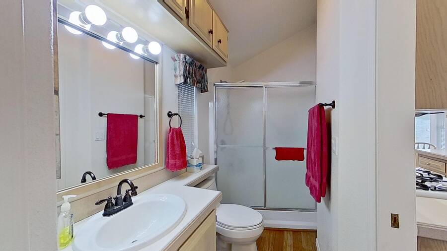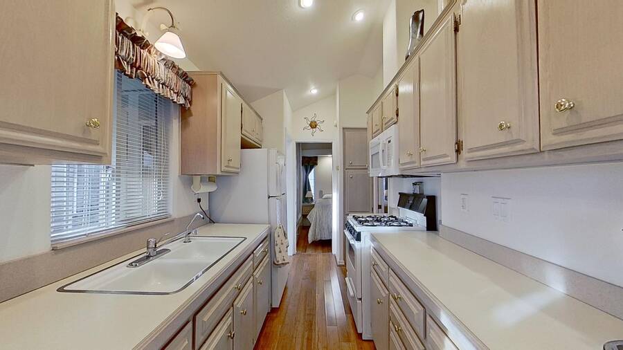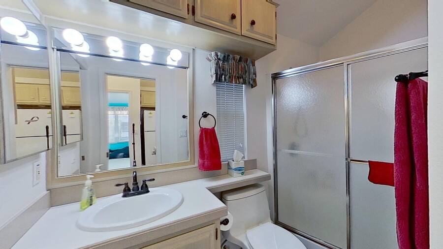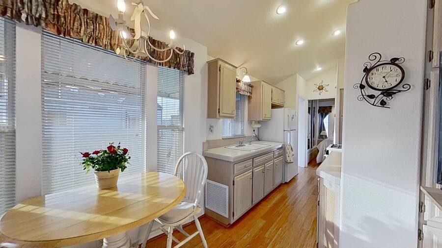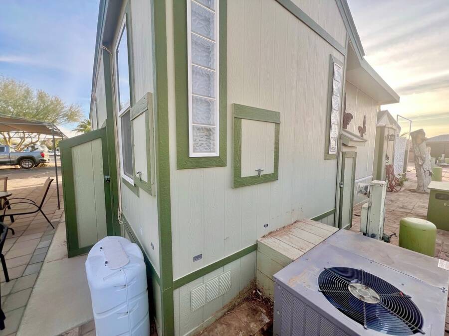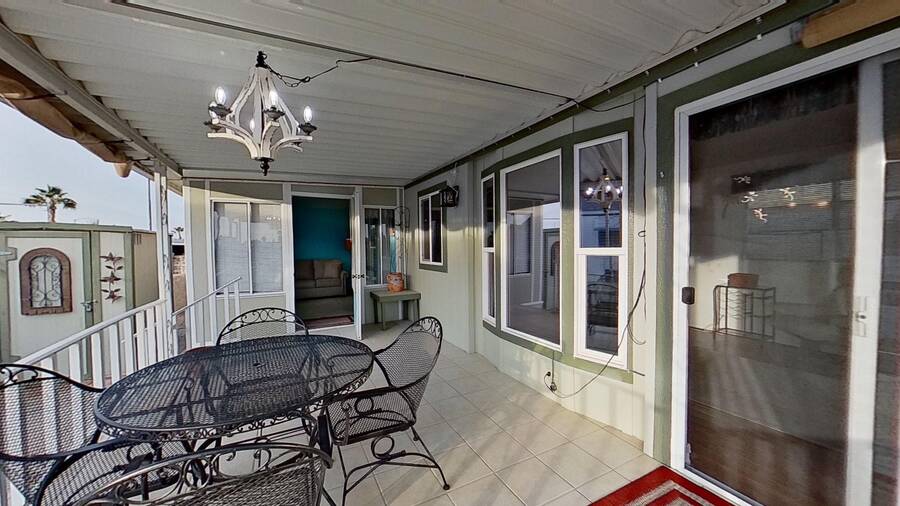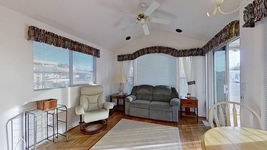 Park Model For Sale in Bonita Mesa Resort 1 Bedroom, 1 Bathroom Extra-Wide Lot with Tile Pavers Covered Tile Deck - Perfect for dining & entertaining with rope lighting and chandelier ambiance. Features: ️ Spacious living, dining, and kitchen area Full-size shower for comfort ️ King-size bed for ultimate relaxation Large Arizona room - Ideal for guests or extra space Advanced water system with Reverse Osmosis & water softener Resort Amenities: Giant community center with pool for ultimate relaxation Shuffleboard & pickleball facilities for active fun Pool tables & poker tables for socializing Exercise room with top-quality equipment Weekly Wednesday night dances Safe, walkable, and vibrant community spirit Prime Location: Faces large open areas both front AND back, making it the perfect retreat! Call today to tour this beautiful home and discover the Bonita Mesa lifestyle!