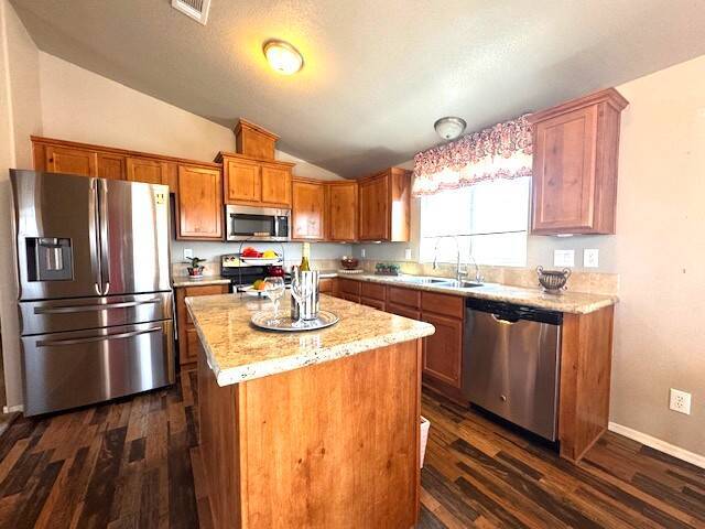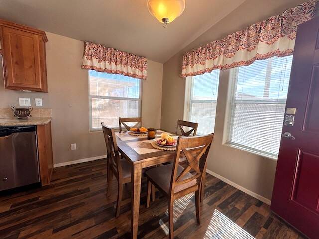 Kitchen has stainless steel appliances. Nice size dining room with table & chairs. Master bath w/double vanity and walk in shower. Solar tubes in the laundry room and 2nd bath. R.O system whole home water softener. Laminate Flooring. Vaulted ceilings. 4 ceiling fans. Covered & gated front porch. 12 x 45 Screened and covered parking. Outdoor 55" TV with cover. 8 x 8 shed. Close to all amenities, mail and office. Space rent is $365 per month Sewer and water are metered and billed monthly through the park Electricity is billed direct from APS CVR is located within Yuma City limits CVR is an active 55+ community with a 4 lane bowling alley, 2 pools, 2 spas, pickle ball (8 courts), shuffleboard, billiards, cornhole, fitness center, yoga, Pilates and all kinds of card and board games. No chance of getting bored here!!