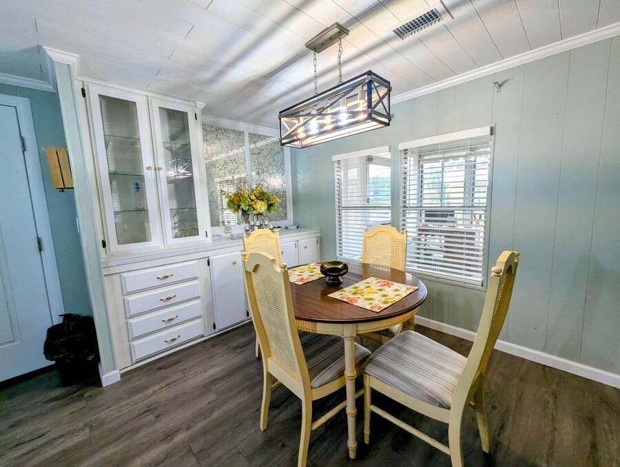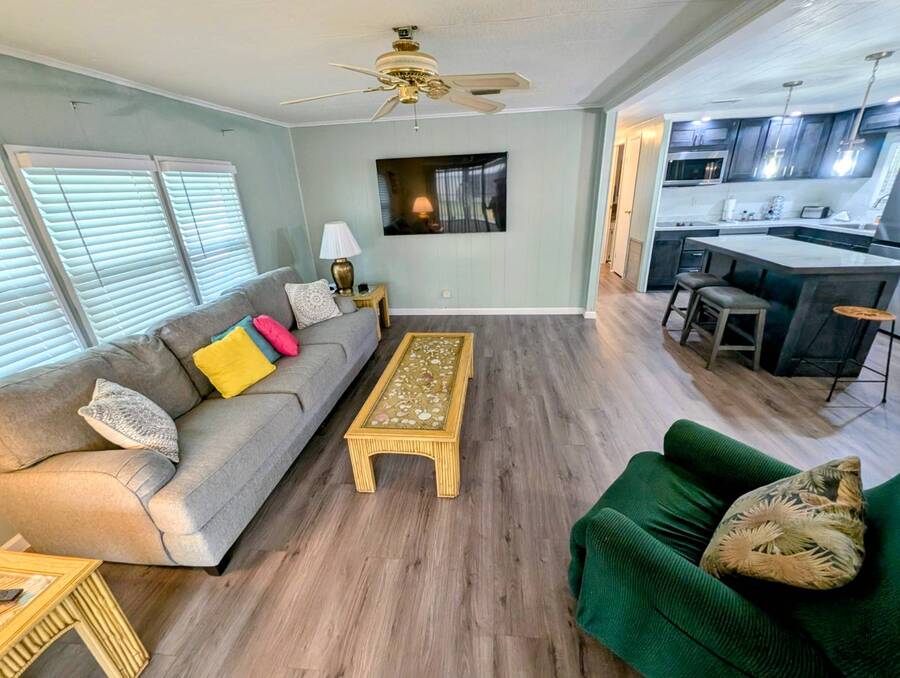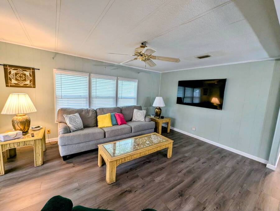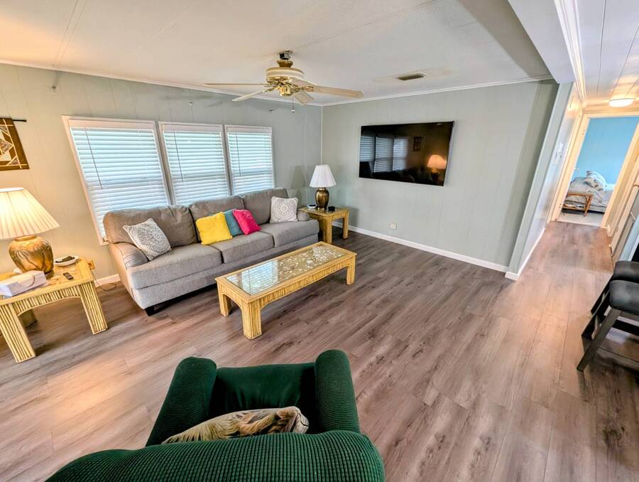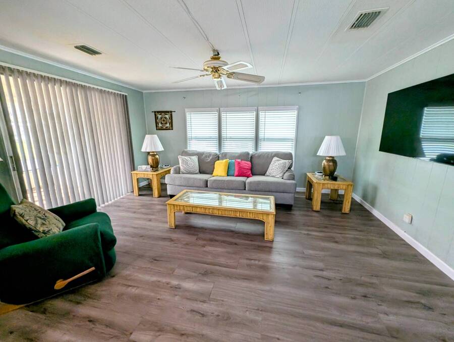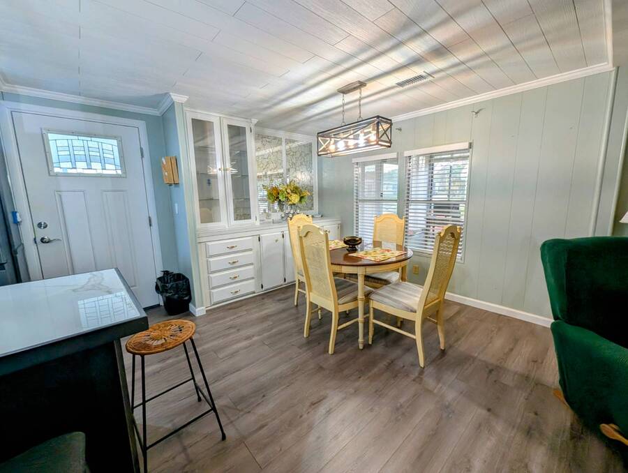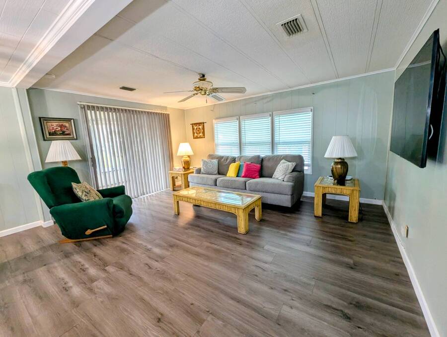 Experience luxury and comfort in this stunning, fully remodeled 2 bed, 2 bath home nestled within the serene 55+ community of Clover Leaf Farms. Every inch of this home has been thoughtfully updated to provide modern convenience and style. The bedrooms boast brand new plush carpeting, while the rest of the home features elegant new vinyl plank flooring that complements the fresh, open feel.The heart of this home is undoubtedly the completely remodeled kitchen, where new appliances, cabinets, and a striking center island take center stage. Enhanced with new recessed lighting, this kitchen is both a chef's delight and an entertainer's dream.Step outside to discover ample outdoor entertaining spaces-a charming side screened porch and a front Florida room that you can relish all year round. This home not only offers indoor luxury but also invites you to enjoy the Florida lifestyle to its fullest. This home comes fully furnished and ready to welcome you. **Clover Leaf Farms is a 55+ community with a monthly lot fee of $856 that covers water, sewer, trash pickup 3 times a week, lawncare, and access to all of the amenities including indoor and outdoor heated pools, hot tub, sauna, catch and release fishing lake, fitness center, library, pickleball court, and much more!