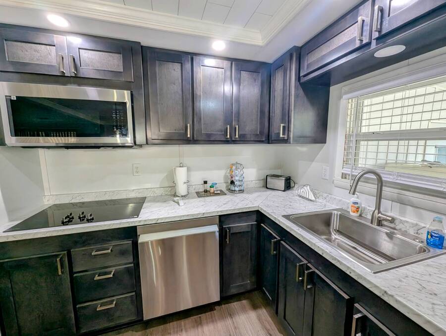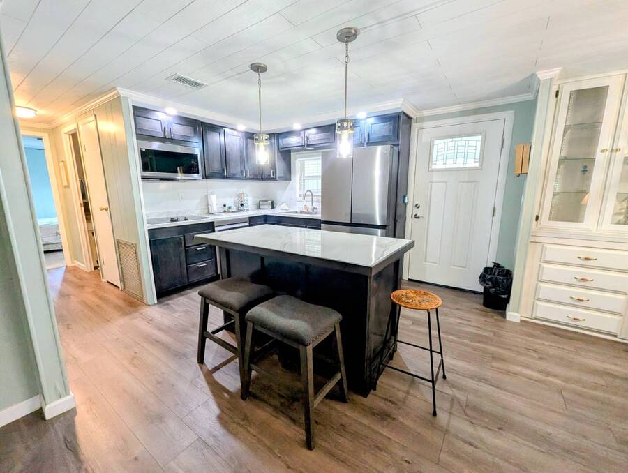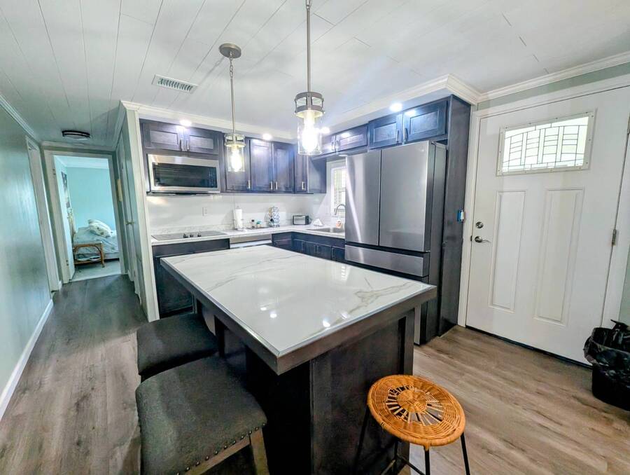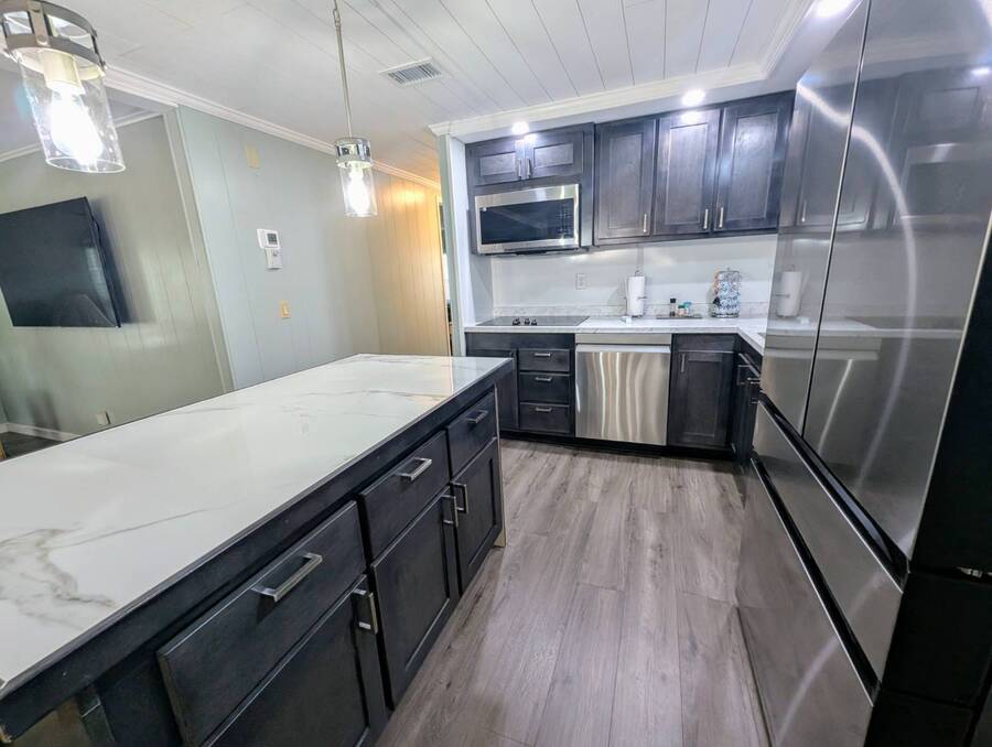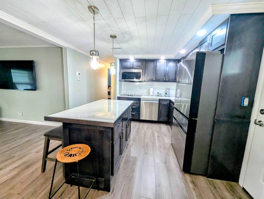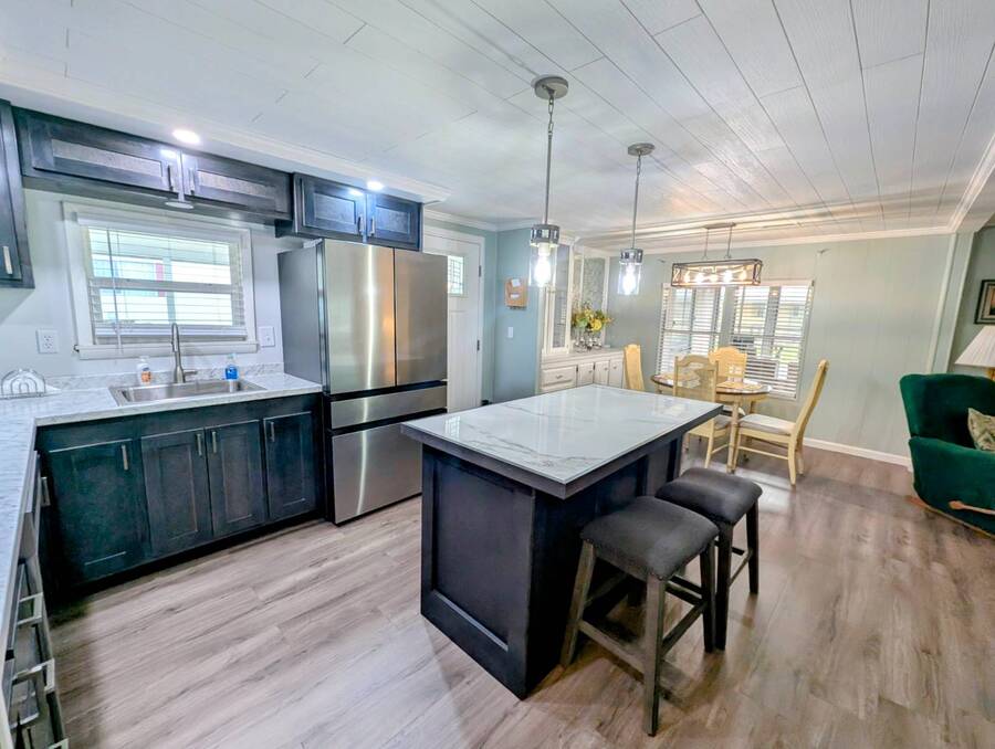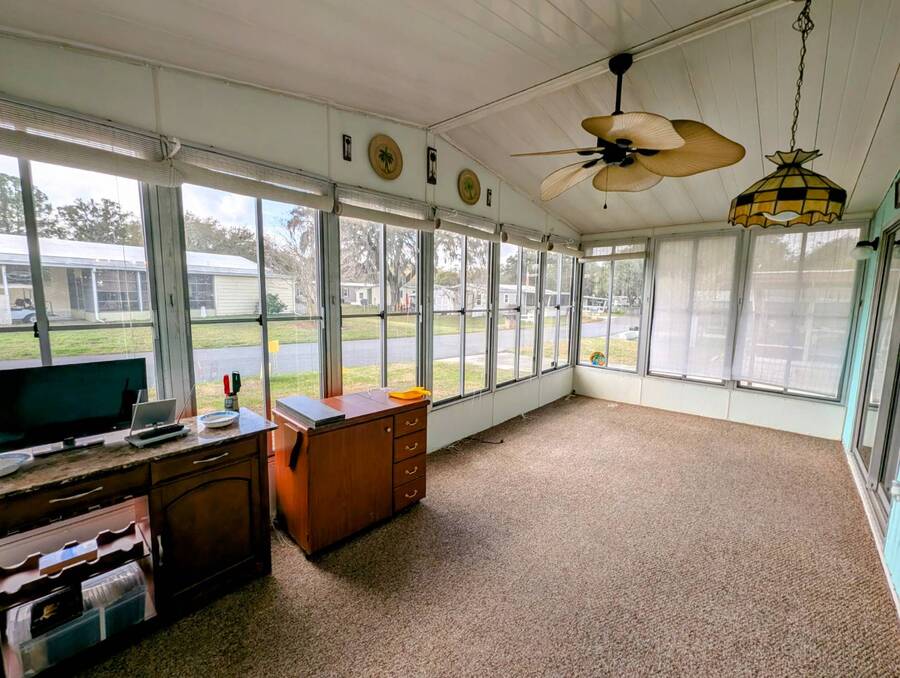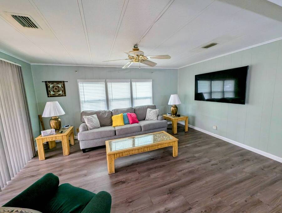 Experience luxury and comfort in this stunning, fully remodeled 2 bed, 2 bath home nestled within the serene 55+ community of Clover Leaf Farms. Every inch of this home has been thoughtfully updated to provide modern convenience and style. The bedrooms boast brand new plush carpeting, while the rest of the home features elegant new vinyl plank flooring that complements the fresh, open feel.The heart of this home is undoubtedly the completely remodeled kitchen, where new appliances, cabinets, and a striking center island take center stage. Enhanced with new recessed lighting, this kitchen is both a chef's delight and an entertainer's dream.Step outside to discover ample outdoor entertaining spaces-a charming side screened porch and a front Florida room that you can relish all year round. This home not only offers indoor luxury but also invites you to enjoy the Florida lifestyle to its fullest. This home comes fully furnished and ready to welcome you. **Clover Leaf Farms is a 55+ community with a monthly lot fee of $856 that covers water, sewer, trash pickup 3 times a week, lawncare, and access to all of the amenities including indoor and outdoor heated pools, hot tub, sauna, catch and release fishing lake, fitness center, library, pickleball court, and much more!