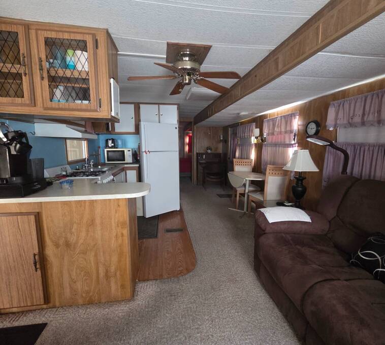 COMMUNITY: Welcome to Holiday RV Village a sought after fun in the sun resort community. 55 plus gated community, complete with 2 pools, private Marina with Chain of Lakes access, planned activities, onsite cafe, pet friendly 2 dog max and a ton of Resort style amenities. Close to Disney, local springs, beaches and many other local attractions. FEATURES: 240 square foot four seasons room which is under heat and air increasing living space to 660 square feet, large carport which is great for double car parking, all new plumbing and much more. BENEFITS: Close to all amenities, solid and well maintained. PRICED TO SELL!!! SELLER IS LOOKING FOR AN OFFER!!! Lifestyle fee includes water, sewer and trash and is below local average!!!